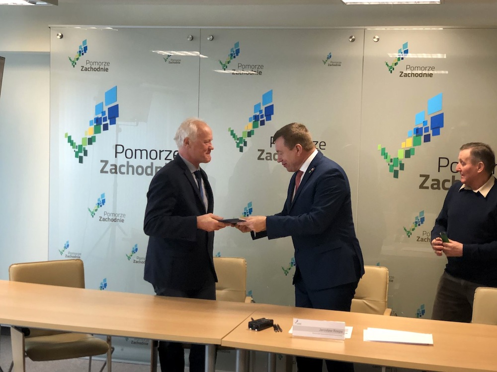 Chodzi oczywiście o naszych społecznych strażników rybackich, do których trafi nowy, specjalistyczny sprzęt do walki z kłusownikami. Wicemarszałkowie Jarosław Rzepa i Tomasz Sobieraj oraz prezes Zarządu Okręgu Polskiego Związku Wędkarskiego w Szczecinie Grzegorz Rogalewicz i nasz skarbnik Stefan Dembek złożyli swoje podpisy pod bardzo ważną umową. Zachodniopomorski Urząd Marszałkowski poprzez Stowarzyszenie „WIR”, czyli Wiejską Inicjatywę Rozwoju, przyznał nam dofinansowanie w wysokości ponad 170 tysięcy złotych, z czego ponad 147 tysięcy pochodzi z Unii Europejskiej. Pieniądze wykorzystane zostaną na zakup nowoczesnego sprzętu i wyposażenia do walki z kłusownictwem dla Społecznej Straży Rybackiej działającej na terenie trzech powiatów: pyrzyckiego, stargardzkiego i gryfińskiego. Dotyczy to w sumie ochrony 31 jezior. Wartość całego projektu przekracza 200 tysięcy złotych. Przekładając to na realia – do strażników trafi między innymi terenowe mitsubishi, dron z kamerą, ponton Nawigator II z silnikiem.