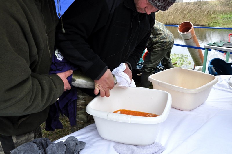 Dla tych, którzy nie wiedzą, jak się to robi – relacja w telegraficznym skrócie. Najpierw na specjalnej przepławce wyłapuje się samice i samce. Ichtiolodzy potrafią ocenić, czy są one gotowe do tarła. Później ryby przechodzą kąpiel w wodzie z dodatkiem środka usypiającego. To dla ich dobra, aby podczas procesu zapładniania ograniczyć im możliwość ruchu. Samicom wbija się w powłoki brzuszne igłę, za pomocą której pod ściśle kontrolowanym ciśnieniem wpuszcza się powietrze. W odróżnieniu od metody tradycyjnej nie trzeba już wyduszać palcami ikry, bo wypływa sama. Metoda jest więc bardziej bezpieczna dla samic, ale też i dla samej ikry. Mlecz samców pozyskuje się już normalnie i w ciągu kilkunastu minut dochodzi do zapłodnienia.