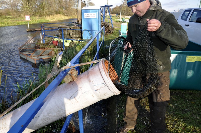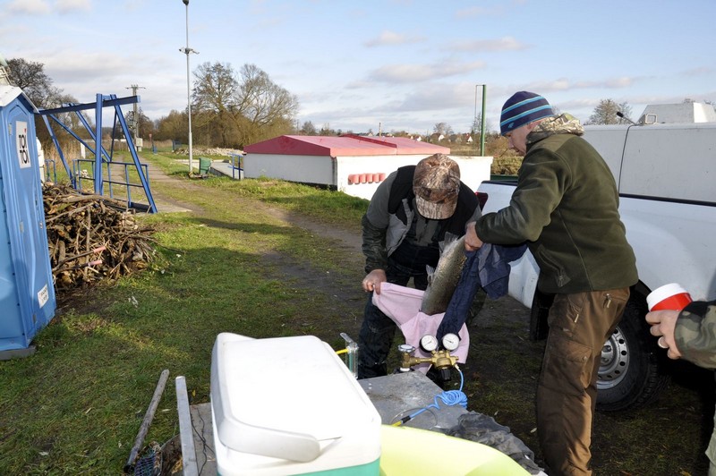 Nasi specjaliści tegoroczne tarło przeprowadzane nad Regą w Trzebiatowie właśnie skończyli. Na przepławce złowiono około dwóch ton ryb. Trzeba było je oczywiście wyselekcjonować wybierając te samice, których ikra była już gotowa. O tym, jak się odbywa tarło, opowiedział mi nasz okręgowy ichtiolog Łukasz Potkański. Przetrzymywane w specjalnych zbiornikach ryby są najpierw usypiane. Następnie w powłoki brzuszne wbijana jest igła, którą z butli transportowane jest powietrze. Wypycha ono zgromadzoną w samicy ikrę bez potrzeby jej ręcznego wyciskania. Ziarenka z kilku ryb trafiają do miski. Kolejnym krokiem jest pobranie od samców mlecza, który po dodaniu wody ikrę zapłodni. Do tego procesu dochodzi w kilka godzin. Ikra pęcznieje i twardnieje. Można ją już bezpiecznie przewieźć do specjalnych aparatów stojących w naszej okręgowej goleniowskiej wylęgarni. Tam musi dojrzewać. Maleńkie trocie zaczną się pojawiać pod koniec lutego.