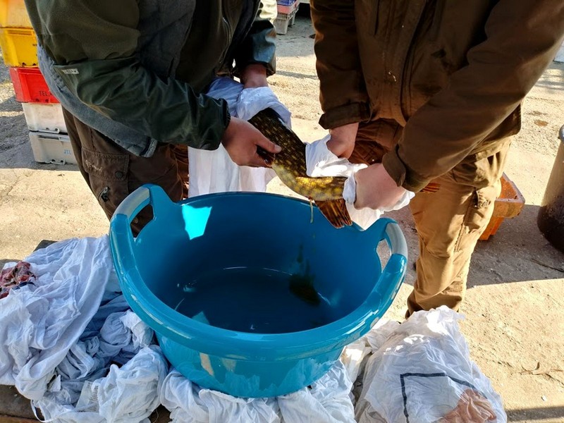 70-80 litrów. Bez większych problemów powinno się to udać właśnie z wód wspomnianego jeziora. Z pierwszych zapłodnień mamy już pierwsze wylęgi. Taki proces trwa około trzech tygodni. Niestety czekamy na lepszą pogodę. Szczupaki są bardzo wrażliwe i zimne noce, a szczególnie poranki źle wpływają na proces rozrodu. Narażona jest przede wszystkim właśnie ikra. Sztuczne tarło powinniśmy skończyć mniej więcej za trzy tygodnie. Sporo szybciej, bo już pod koniec tygodnia zaczniemy zarybianie. Trzymajmy więc kciuki, aby się wszystko udało. Niestety na szczupaki z tegorocznego wylęgu będziemy musieli jeszcze poczekać co najmniej dwa lata.