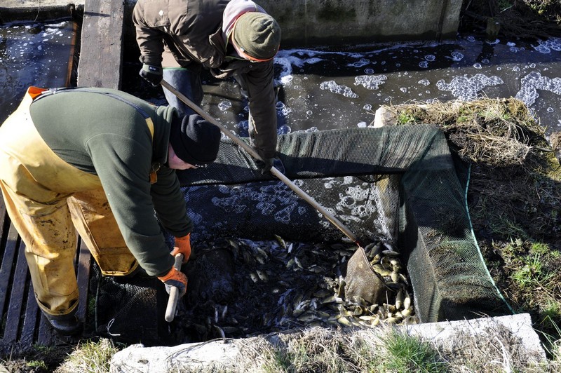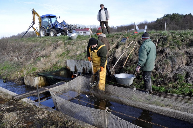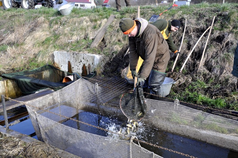 - Odławiamy dziś małe karpiki, które zimowały w naszych stawach. W całości trafią do oczyszczonego po zimie innego stawu. Będziemy je nadal dokarmiać. Jesienią będzie to już dorodny kroczek. Ta część stawów, która odpoczywała, była oczywiście wapnowana, nawożona i teraz je zalewamy, aby można było tam przenosić ryby do dalszego chowu. Oczywiście nie dotyczy to tylko karpi. Odławiane będą też liny, a potrzebujemy ich sporo. Do stawów trafi też szereg gatunków ryb, które mamy na wylęgarni. Będą to na przykład certy, jazie, klenie czy bolenie. Ale skoro wspomnieliśmy o wylęgarni. Naprawdę dużo narybku już ją opuściło. Najwięcej wyklutego narybku miętusów, którego było, bagatela, około 20 milionów sztuk. Do tego trzeba dołożyć 3 miliony sztuk sielawy i osiemset tysięcy siei wędrownej. Wydaliśmy też 400 tysięcy sztuk siei jeziorowej, która trafiła do jeziora Morzycko. Puste miejsca na wylęgarni zapełniają się teraz zapłodnioną sztucznie ikrą szczupaków – dodaje Marcin Klupś.
