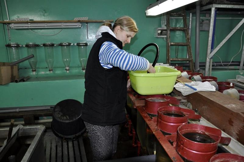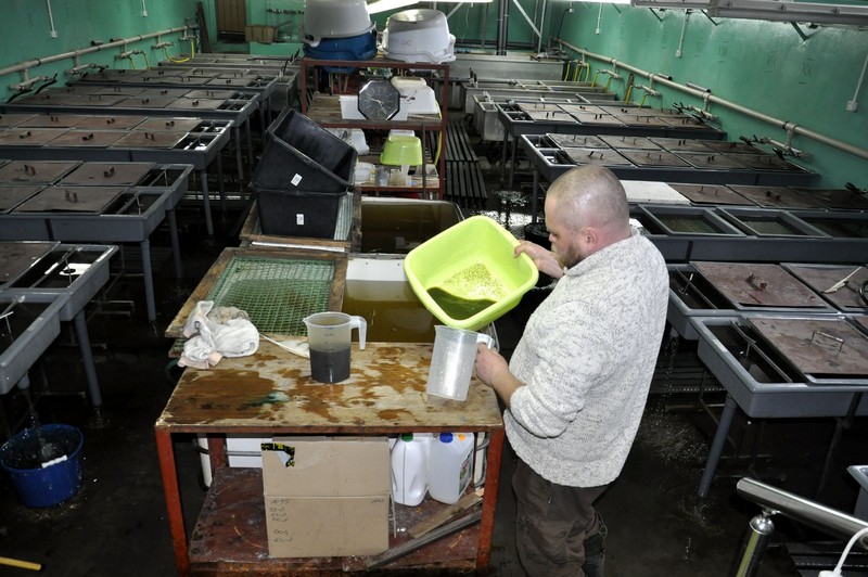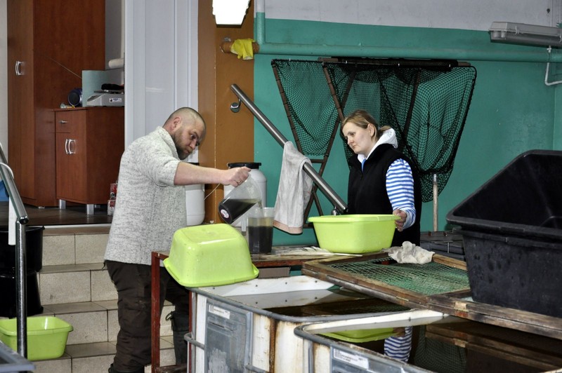 Ale nie tylko miętus gości tłumnie w wylęgarni. Zaczyna się wykluwać troć wędrowna, pstrąg potokowy i sieja wędrowna. Nieco później podobnie będzie z sielawą, a przecież warto pamiętać, że to nie koniec. Niebawem do tarła zaczną przystępować na przykład szczupaki czy bolenie. Ich ikra również trafi do wylęgarni w miejsce narybku, którym właśnie się opiekujemy.