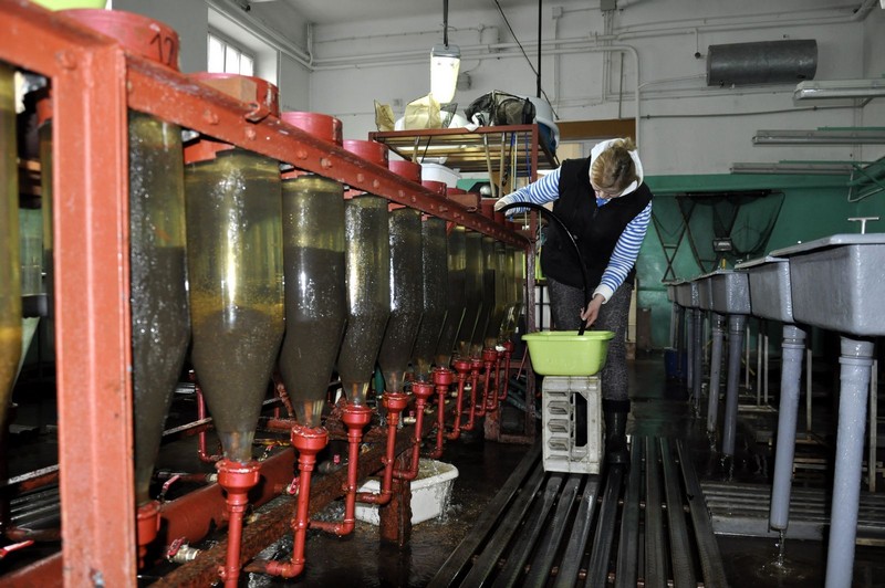 – Pracy jest bardzo dużo – nie kryje Marcin Klupś. – Trzeba pilnie śledzić, co dzieje się w aparatach kalifornijskich i słojach Weissa. Każde uszkodzone ziarenko ikry trzeba usunąć, aby nie zatruwało innych. To precyzyjna i żmudna robota. Ikra troci jest już w połowie skluta, a mamy jej prawie dwa miliony ziaren. Za dwa, trzy tygodnie pojedzie już na zarybianie do naszych zachodniopomorskich rzek, czyli na przykład do Regi, Iny, Gowienicy czy Wołczenicy. Rekordzistą jest chyba ikra miętusów. Pozyskaliśmy jej ponad 22 miliony sztuk. Sielawy trzy miliony. W sumie pod naszą opieką jest ponad 27 milionów sztuk zapłodnionej ikry. To bardzo dużo i jest się z czego cieszyć.