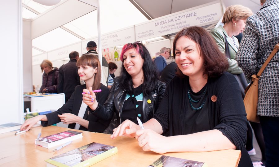 Nominowane do Nagrody Gryfia Kalina Błażejowska oraz Sylwia Chutnik w salonie ProMedia opowiadały o swoich książkach. Błażejowską jest autorką poruszającego „Upartego serca. Biografii Poświatowskiej”, Chutnik wydała „W krainie czarów”, poetycki tom opowiadań o mało poetyckich sytuacjach. Spotkanie poprowadziła Marta Zabłocka.