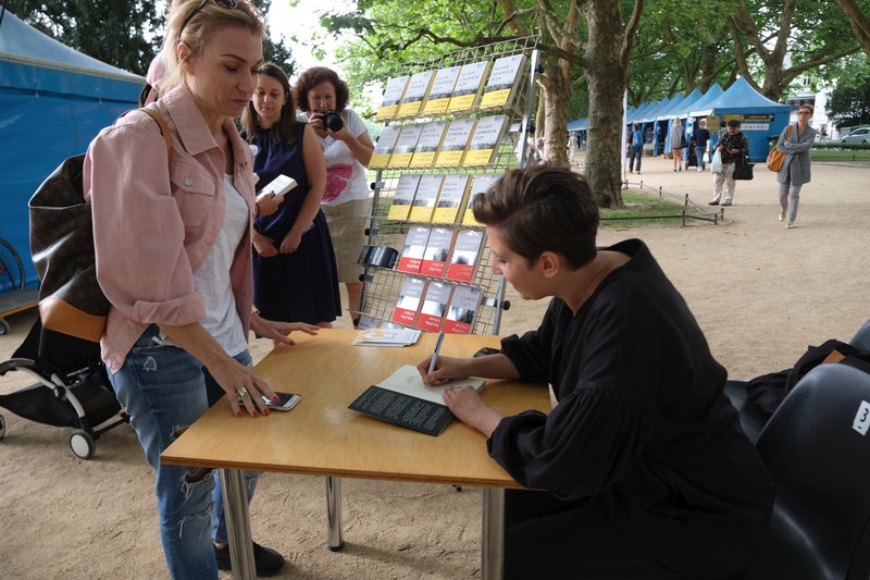 Na zdjęciu: Justyna Kopińska podpisuje swoje książki.
