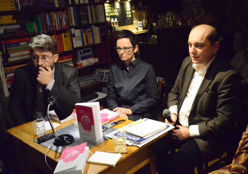 Na zdjęciu: Rozmowa o książce. Od lewej współautorzy tomu: Eryk Krasucki, Inga Iwasiów i redaktor Basil Kerski