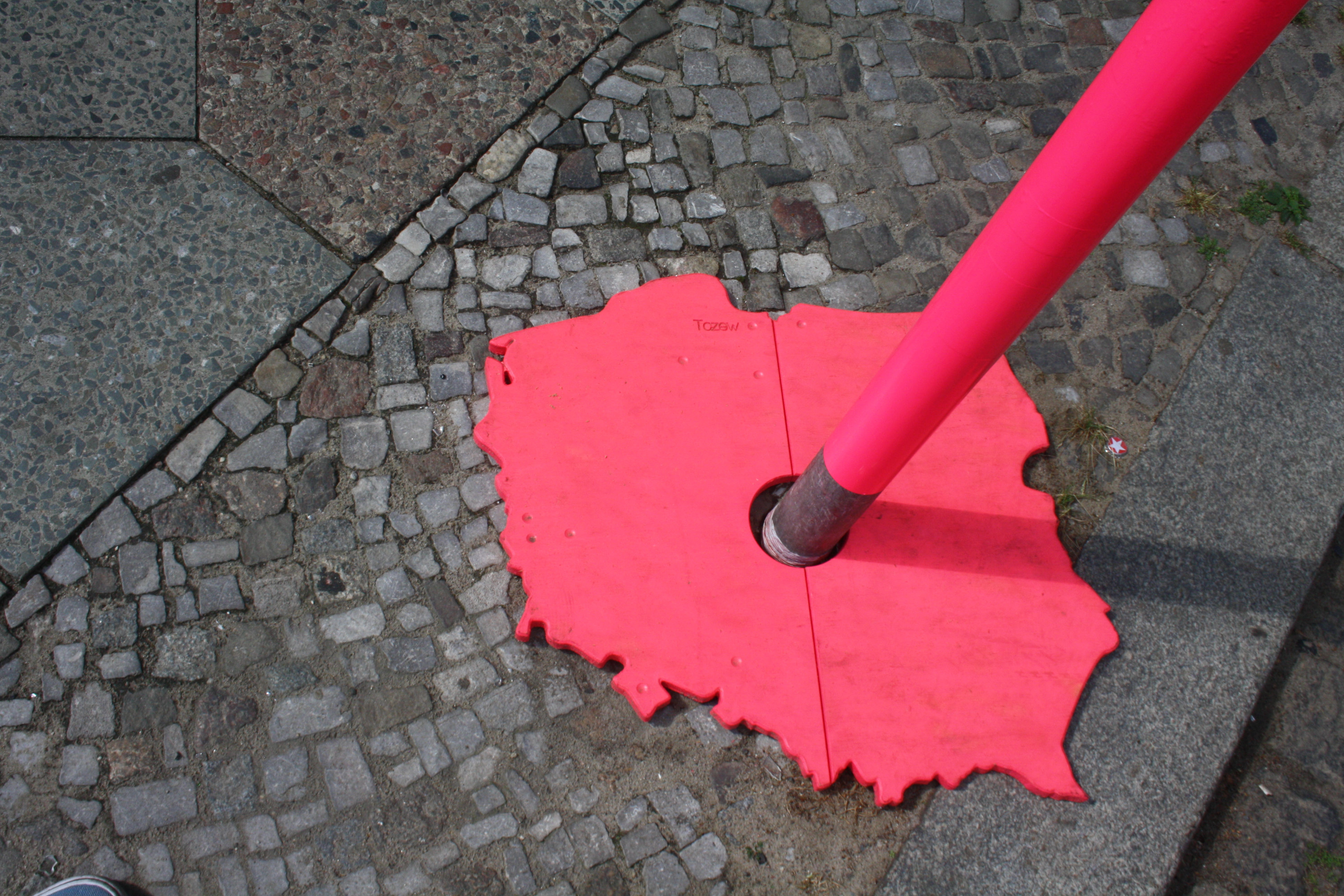 93 jaskrawo różowe maszty z obrysem Polski u stóp stanęły w berlińskim Friedrichshainie, wschodniej części dzielnicy Frierichshain-Kreuzberg. Pojawiły się na ulicach, które noszą nazwy dawnych niemieckich miejscowości, dziś leżących w granicach Polski.