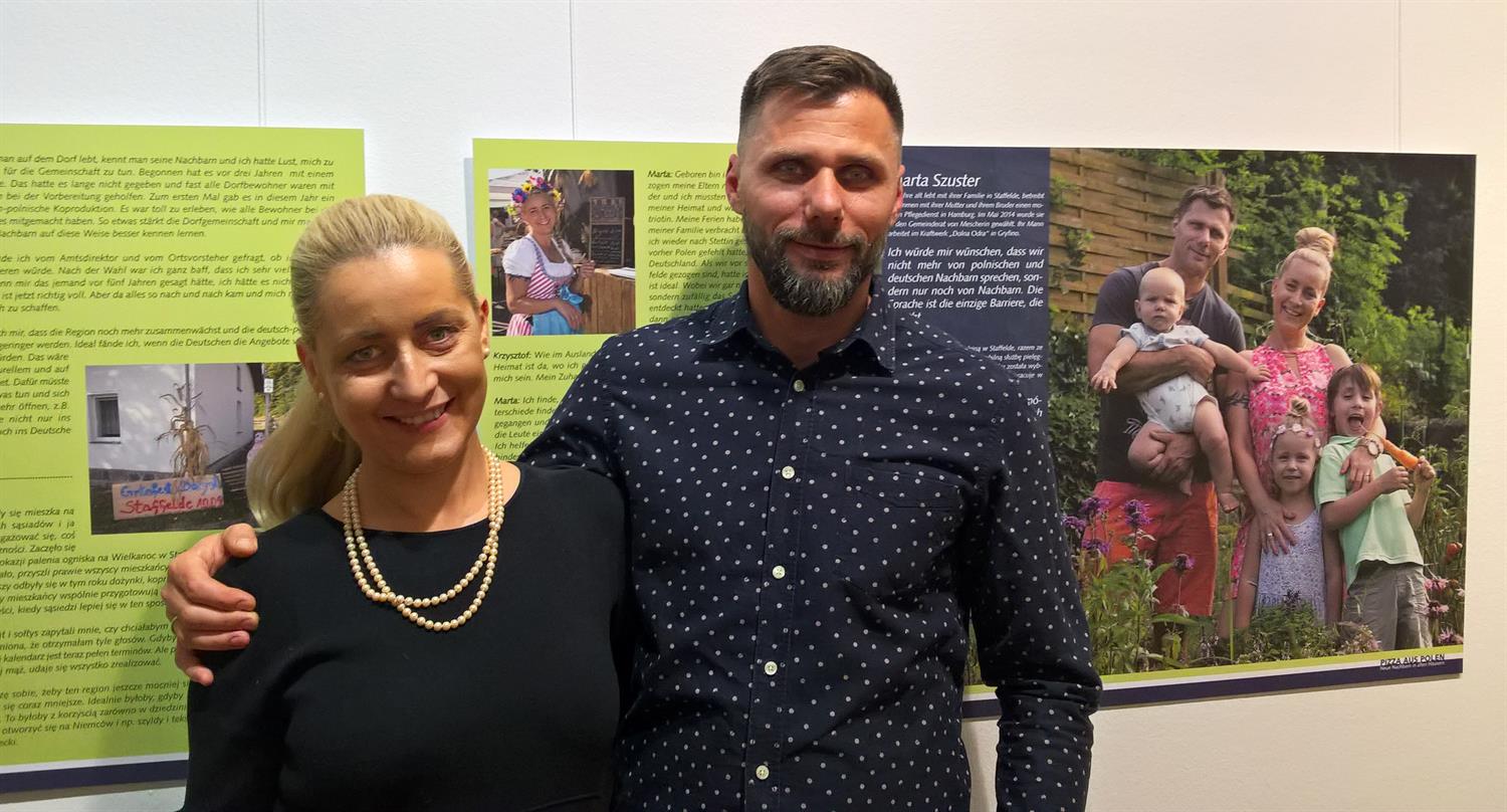Wystawę otwierał szef kancelarii rządu Brandenburgii, min. Thomas Kralinski. Na wernisaż przyjechali jej bohaterowie, niemieccy i polscy mieszkańcy gminy Mescherin: Marta i Krzysztof Szusterowie z dziećmi, Joanna i Paweł Kot z synem, Volker Schmidt-Roy, Axel Bieske, inni. Marta Szuster jest radną gminy. Głosowali na nią i Polacy, i Niemcy. Więcej głosów otrzymał tylko burmistrz.
