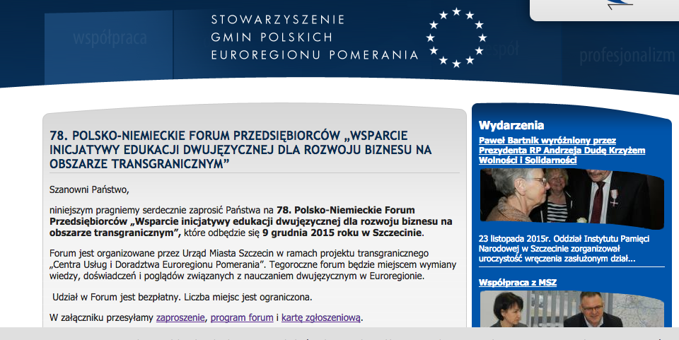 Szczegóły i zgłoszenia: cud.szczecin@um.szczecin.pl, tel: 91 424 53 60, 91 424 11 17. Forum organizowane jest w ramach transgranicznego projektu Centra Usług i Doradztwa Euroregionu Pomerania, a współfinansowane ze środków EFRR (INTERREG IV A).