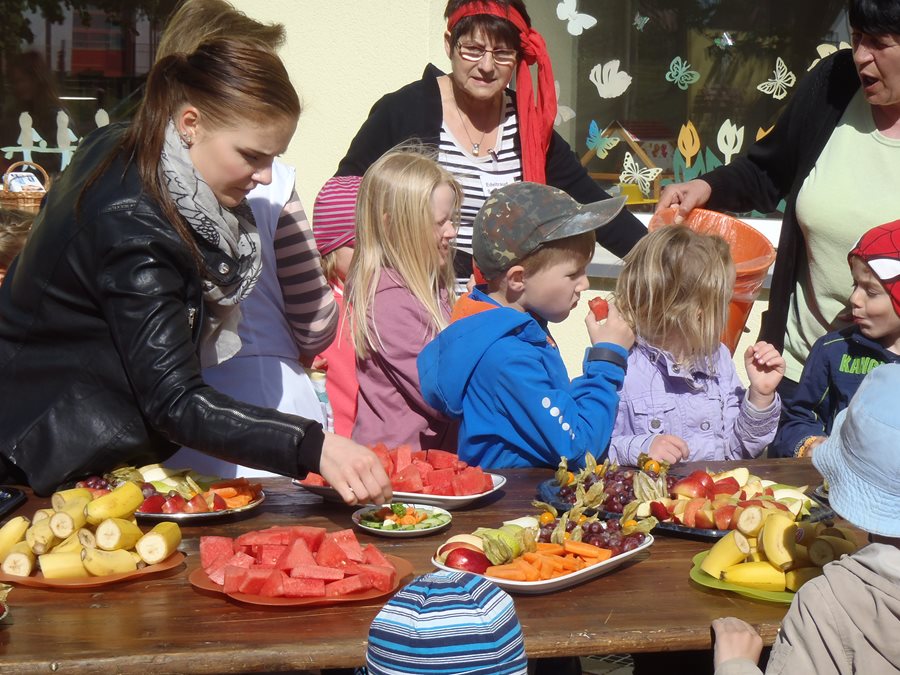 Już z daleka gości witał ogromny transparent zapowiadający temat spotkania: „Wyspa Piratów”. Animatorka, Irena Wiktorowska-Wurscht, i dwie praktykantki z Uniwersytetu Szczecińskiego były przebrane za korsarzy i robiły wszystko, aby dzieci czuły się jak w pirackiej załodze. Po krótkim powitaniu przez kierowniczkę przedszkola Inez Schmidt dzieci zaproszono na poczęstunek. Stoły uginały się od kolorowych owoców przypominających dary z wysp tropikalnych. Arbuzy, melony, ananasy i winogrona szybko znalazły amatorów. Potem dzieciaki podzielono na grupy i poszły szukać skarbów, ukrytych w różnych miejscach Passow, zamienionego w wyspę pełną pirackich skarbów. Goście mieli wtedy okazję zwiedzić placówkę.