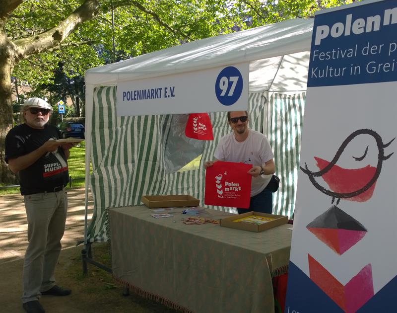 W Spotkaniu Organizacji Pozarządowych „Pod platanami” uczestniczyło jak co roku Stowarzyszenie polenmARkT z Greifswaldu i jego prezes dr Marek Fiałek (na zdjęciu z prawej). Od 1997 r. stowarzyszenie organizuje festiwal polenmARkT, największy stały festiwal kultury polskiej w Niemczech, który w tym roku będzie trwał od 12 do 26 listopada. Wezmą w nim udział m.in.: pisarze Stefan Chwin z Gdańska i Matthias Kneip z Damstadt – autor głośnej książki „111 powodów, dla których warto pokochać Polskę”, wydanej ostatnio także w tłumaczeniu na język polski, berliński Klub Polskich Nieudaczników, muzycy jazzowi, zespoły i artyści szczecińscy: Kana, Dikanda, Barbara Tritt i Henryk Tritt, The Analogs oraz Szczecin European Film Festival. Zostanie wręczona doroczna nagroda za osiągnięcia we współpracy polsko-niemieckiej, będzie polska kuchnia, bajki dla dzieci, wystawa o Swantewicie, projekcje filmowe, spotkania. Szczegóły: www.polenmartk-festival.de.