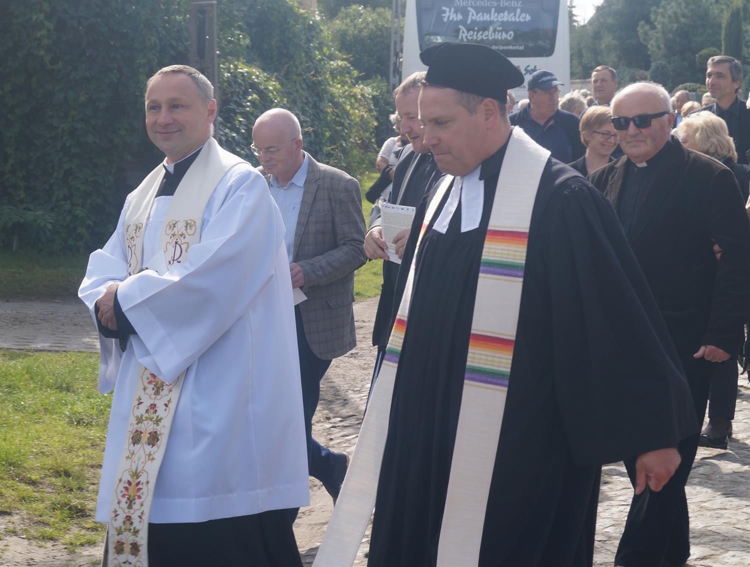 Jubileusz obu wsi mieszkańcy obu stron Odry świętowali wspólnie. Nabożeństwo ekumeniczne za wszystkich, którzy w ciągu wieków związali się z Żabnicą i Dębcami, odprawili przy lapidarium na cmentarzu ks. prof. Cezary Korzec i pastor Bernhard Riedel. Szczeciński Chór im. prof. Jana Szyrockiego śpiewał „Gaude Mater Polonia”, a Polsko-Niemiecki Chór „Spotkanie” z Berlina – „Pieśń o pokój”. Oba chóry zaśpiewały „O radości, iskro bogów…”. Dużo mówiono o kontaktach przez granicę. Karl Lau z Rosow opowiadał o Kościele Pamięci (Gedächtniskirche), który w 2002 r. stworzył w swojej wsi, a który, upamiętniając trudne losy i czasy, służy tym kontaktom.