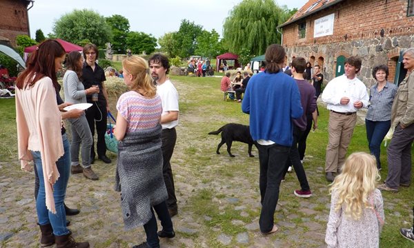 Niemieckie słowo „hof" oznacza zagrodę. Wychodzę więc z sali koncertowej przerobionej z rolniczej szopy i udaję się na wernisaż prac Rainera Oertela - męża Silke, rzeźbiarza, pieśniarza i poety. Na podwórzu wiele jest pięknych zaułków z ręcznie wykonanymi rzeźbami, obsadzonych zielenią, gdzie można zwyczajnie przysiąść i odpocząć. Kawałkom zwykłego drewna czy starych korzeni Rainer nadaje osobliwe kształty. Widać je na każdym kroku. W jednym z budynków znajduje się pokaźny zbiór prac, które każdy z gości może swobodnie oglądać.