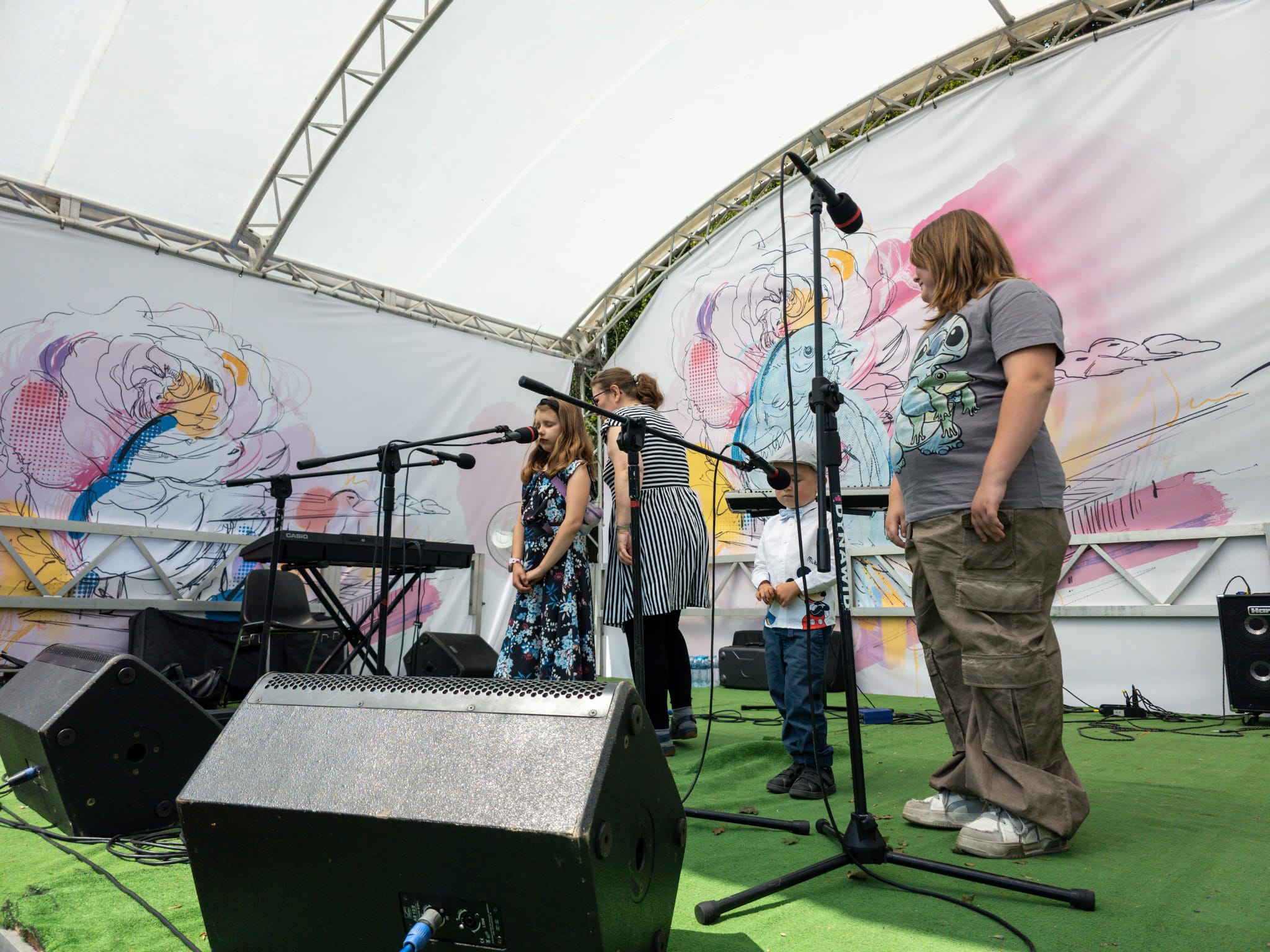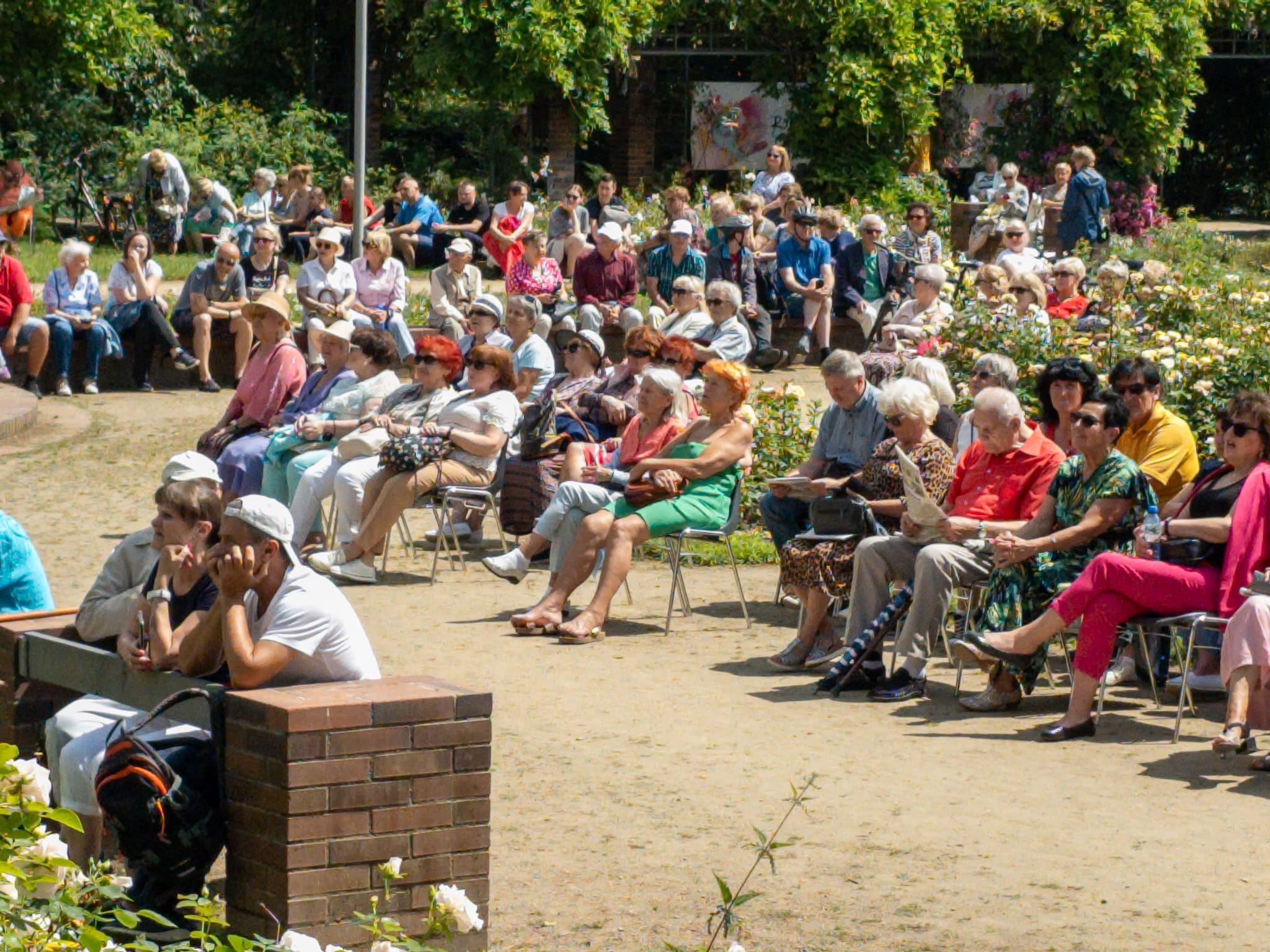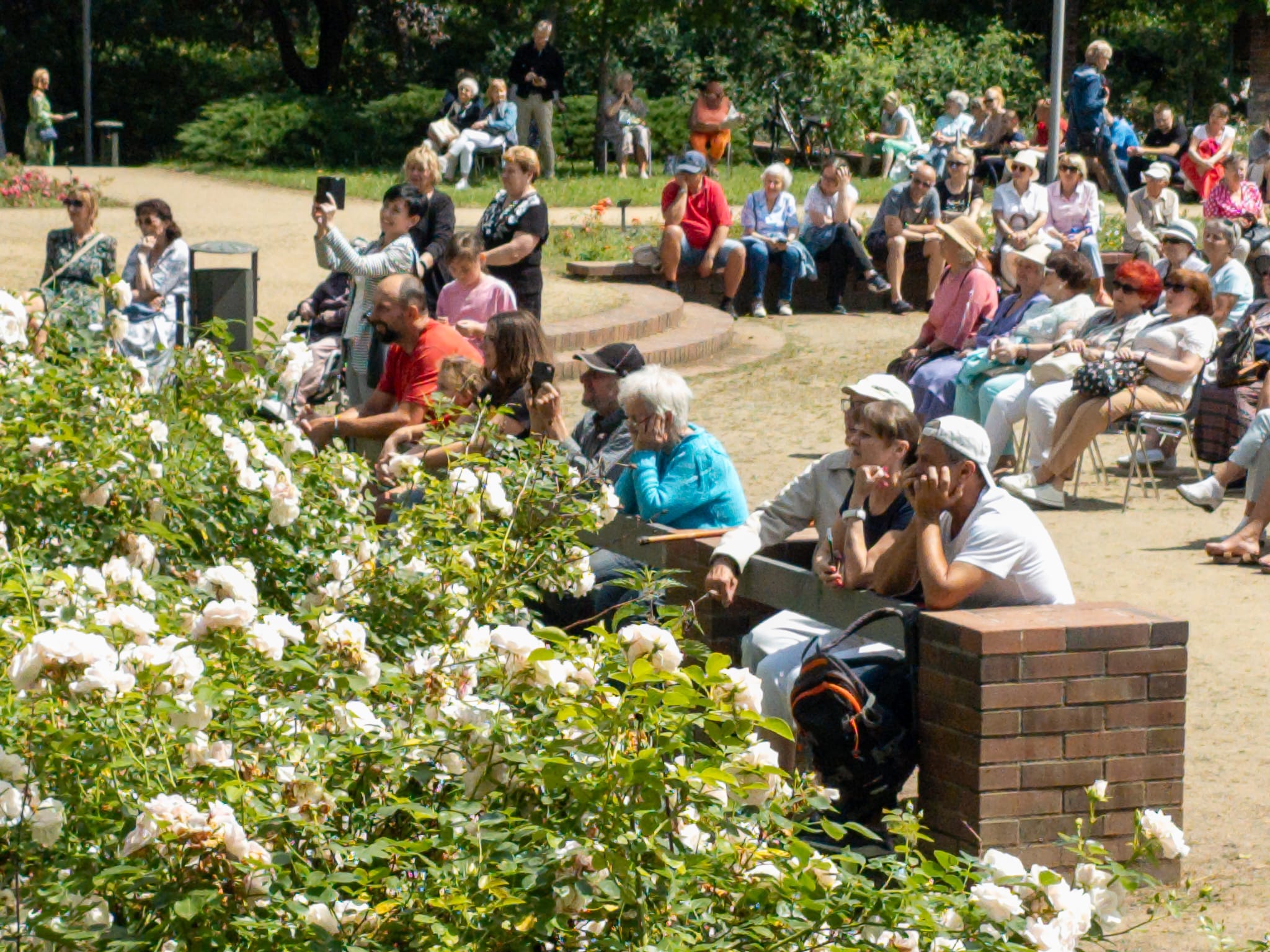 Odwiedzający w niedzielne południe Różany Ogród Sztuki mieli niepowtarzalną okazję uczestniczenia w niezwykłej inscenizacji muzycznej.