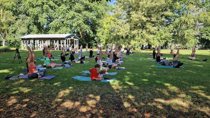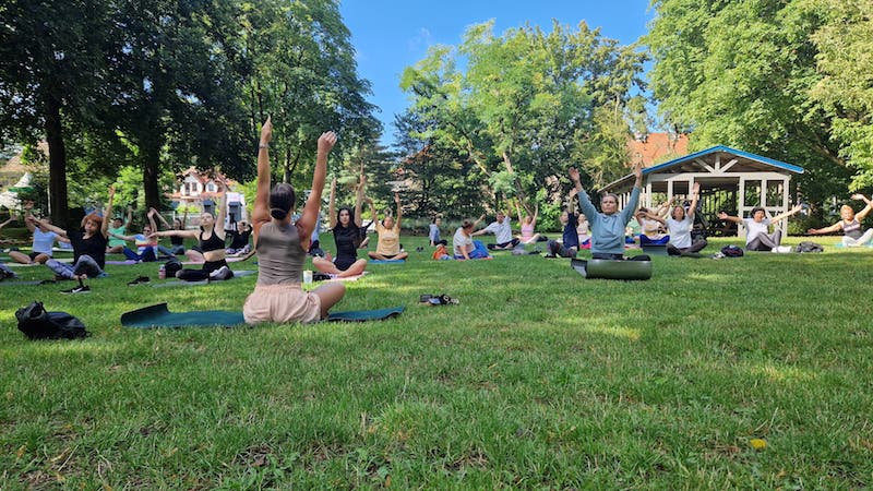 Mimo wczesnej pory (zajęcia zaczęły się o godz. 10.00) udział w ćwiczeniach wzięło ponad trzydzieści osób. Przeważały panie, ale byli także panowie i dzieci. Joga okazała się rodzinną aktywnością. Wydarzenie było bezpłatne i otwarte dla każdego, a zwłaszcza dla tych, którzy chcieli rozpocząć przygodę z tą formą ćwiczeń. Joga pomaga się zrelaksować, poprawić sprawność fizyczną, ponadto zmniejsza ból, sztywność ciała, wzmacnia mięśnie.