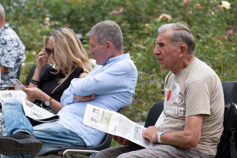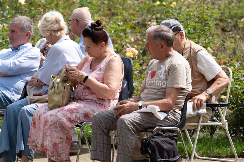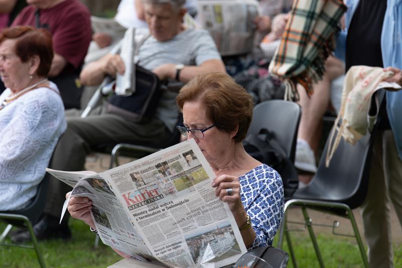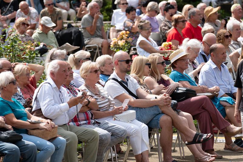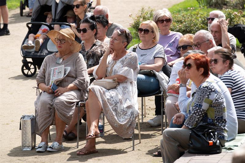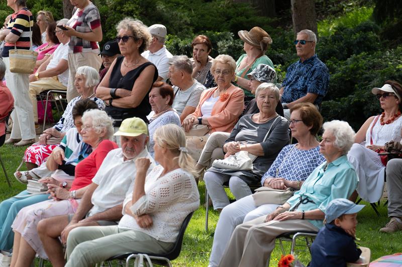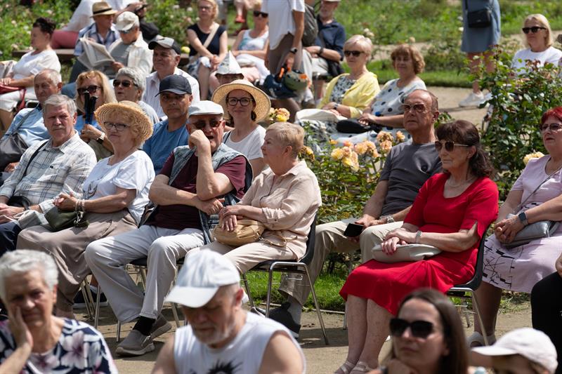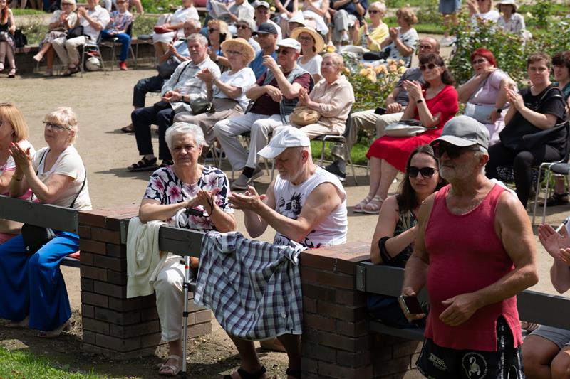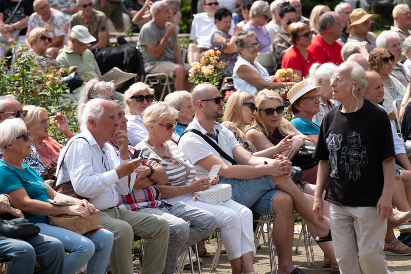 Na koncert przybyły tłumy. Część publiczności zajęła miejsca na ustawionych rzędach krzeseł, inni wybrali chłodniejsze zakątki ogrodu, szukając cienia pod drzewami i parasolami. Pogoda dopisała, słońce grzało mocno, ale nie odstraszyło miłośników dobrej muzyki.