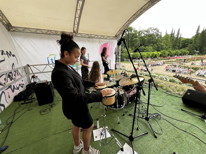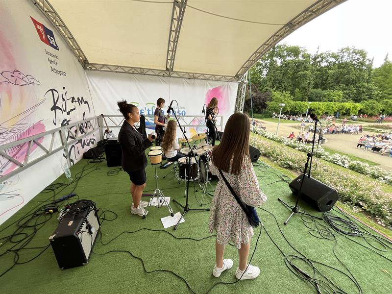 W samo południe na różankowej scenie przed publicznością wystąpił Euromusic - zespół grający gitarowe przeboje grup The Ventures i The Shadows. Zabrzmiała miła dla ucha muzyka mająca początki w latach 60., stanowiąca również ilustracje do wielu filmów. Wykonawcami byli uczniowie Szkoły Muzycznej Euromusic w wieku od lat 9 do 40 - których muzyczną edukację rozpoczynał i prowadzi Ryszard Klemens Wiercimak oraz Przemysław Igiel.