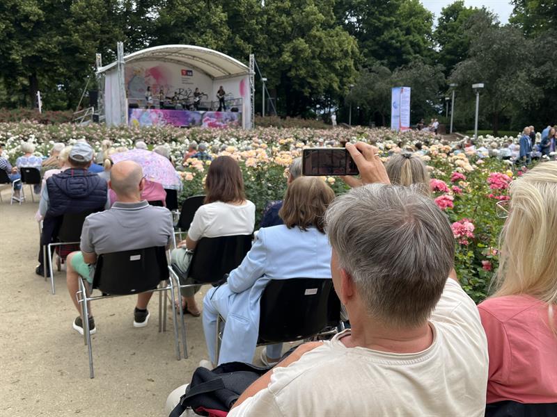 W niedzielne przedpołudnie Różanka zamieniła się w przestrzeń twórczą - rozpoczęły się tam bardzo ciekawe warsztaty. Wszyscy chętni mogli się nauczyć budowy hotelików dla owadów zapylających z wykorzystaniem prostych materiałów. Warsztatom towarzyszyła dyskusja o roli owadów w ekosystemie i ich potrzebach. Kolejnym tematem była „Historia róż – od ogrodów do symboliki” - odbył się wykład i praktyczne warsztaty dotyczące znaczenia róż w historii, sztuce i tradycjach różnych kultur. A także tworzenie dekoracji i instalacji różanych.