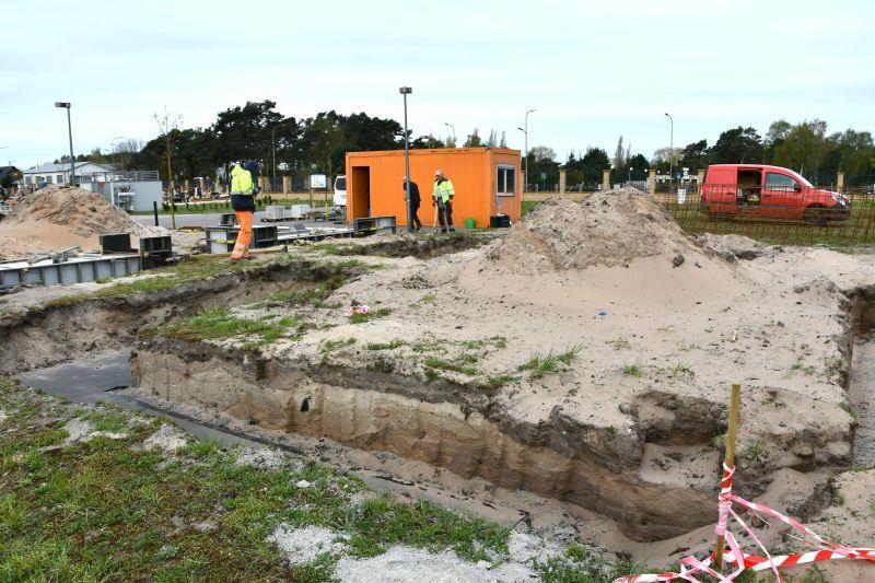 Na nowej części cmentarza trwa budowa kolumbarium. Stanie tuż przy bramie wejściowej. To będzie trzecie i największe na całym naszym cmentarzu. Będzie miało w sumie 380 nisz na 2 i 4 urny. Zgodnie z umową wykonawca szczeciński Świat z Granitu sp. z o.o. ma zakończyć prace budowlane na przełomie lipca i czerwca. Pozostanie jeszcze odbiór inwestycji i wydanie pozwolenia na budowę.