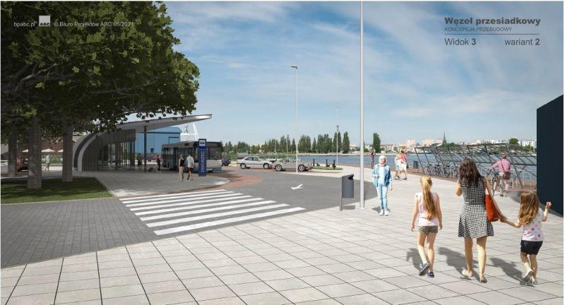 Drugi etap modernizacji węzła obejmuje rejon ulicy Dworcowej na wysokości dworca kolejowo‑autobusowego. Chodzi o obszar samego dworca oraz przyległe chodniki, miejsca postojowe. Wyznaczone zostaną miejsca typu Kiss & Ride. To miejsce do krót kiego postoju, spotykane zwłaszcza właśnie przy dworcach, centrach przesiadkowych czy szkołach. Pojawi się więcej zieleni, a samo miejsce będzie bardziej niż dotąd otwarte na wodę.