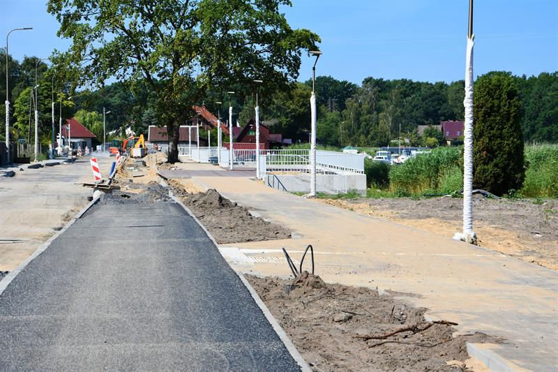 Deptak to tylko część olbrzymiej inwestycji, która rozpoczęła się pod koniec 2020 roku i właśnie dobiega końca. Droga dla rowerów będzie biegła już od zjazdu z mostu wzdłuż głównej ulicy w Karsiborze – ulicy 1 Maja. To w sumie ponad 3 km. Przebudowywana jest także sama ulica 1 Maja. Po przebudowie będzie miała 5,5 metra szerokości, a na łukach do 8 metrów. Po obu stronach będzie chodnik, którego wcześniej nie było w ogóle lub był w szczątkowej formie, a po jednej wspomniana już droga dla rowerów.