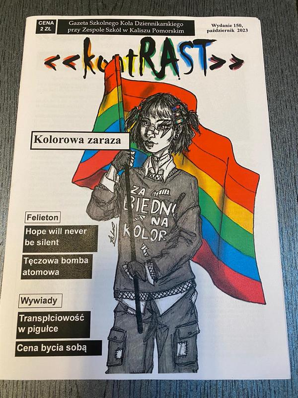 Kalisz Pomorski to miasto w powiecie drawskim. Gazetka ukazuje się w wydaniu papierowym, ale można ją również przeczytać w wersji elektronicznej. Opiekunem redakcji i koła dziennikarskiego jest nauczycielka języka polskiego Aleksandra Radecka, za skład i łamanie pisma odpowiedzialna jest Sławomira Sydlewska. Zespół redakcyjny liczy kilkunastu uczniów, redaktorem naczelnym „Kontrastu” w tym roku szkolnym został Marcel Możdżyński, choć jeszcze w ubiegłbym roku redakcją kierowała Liwia Hejłasz. Szata graficzna pisma i ilustracje to dzieło uczennic: Anny Laski i Hanny Więcek.