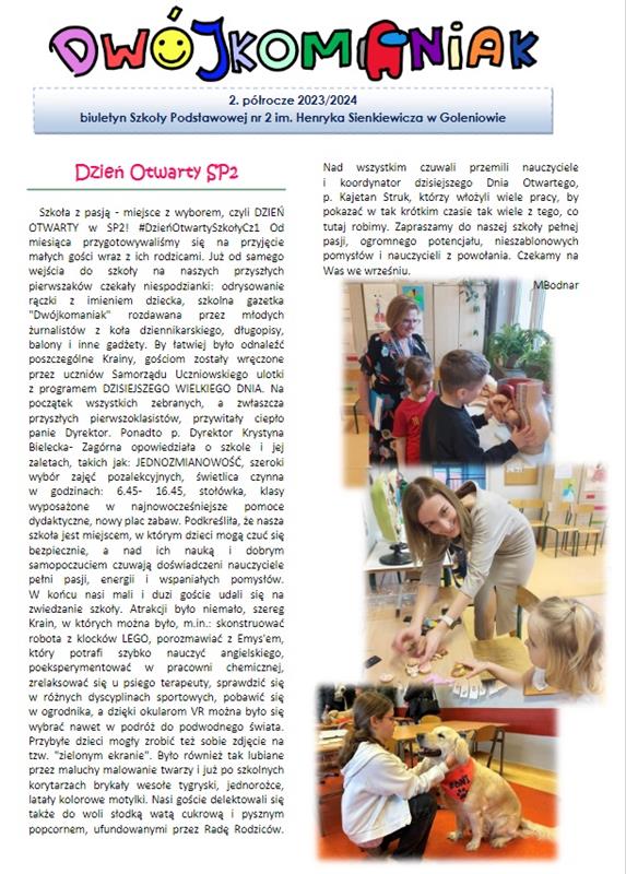 „Dwójkomaniak" debiutuje w konkursie na zachodniopomorskie gazetki szkolne. Pismo, które jest kilkunastostronicowym dwumiesięcznikiem, wydawane jest od lat przez Szkołę Podstawową nr 2 im. Henryka Sienkiewicza w Goleniowie. Biuletyn - tak nazywają go młodzi redaktorzy - jest przygotowywany przez koło dziennikarskie o tej samej nazwie.
