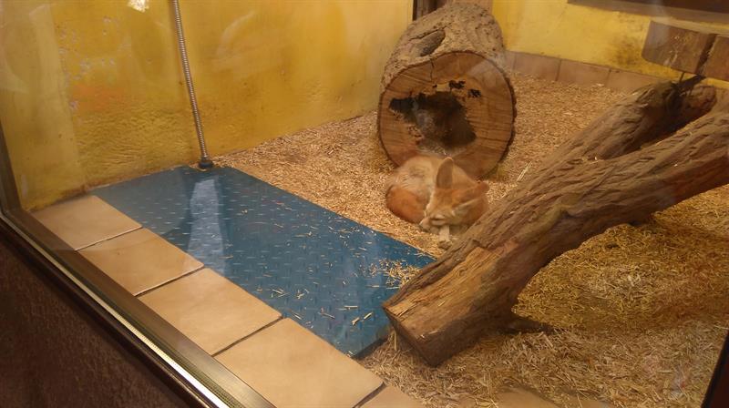 W zoo fenek leżał za szklana szybą i ciekawie się nam przyglądał. Miał swój wybieg, ale przy nas nie chciał z niego korzystać. Dlaczego? Pewnie dlatego że był dzień, a wtedy fenki odpoczywają. Przypominał mi trochę psa koleżanki, tylko że był nieco mniejszy. Bardzo podobała mi się jego barwa, pyszczek i odstające uszy.