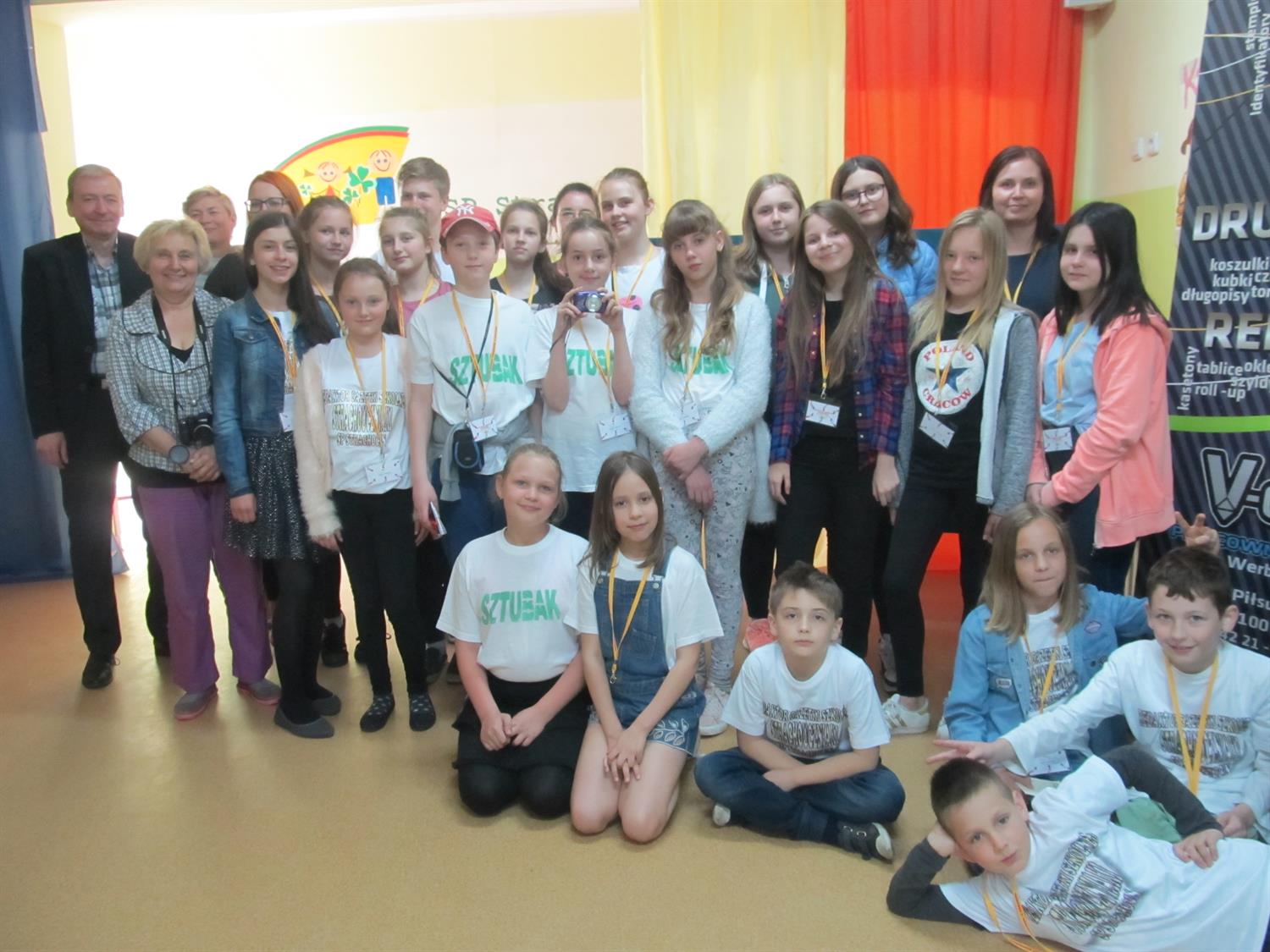 Na zdjęciu: Uczestnicy międzyszkolnych warsztatów dziennikarskich (z SP nr 2 i 7 w Stargardzie oraz SP w Strachocinie) w towarzystwie redaktora „Twojego Radia” Marka Synowieckiego.