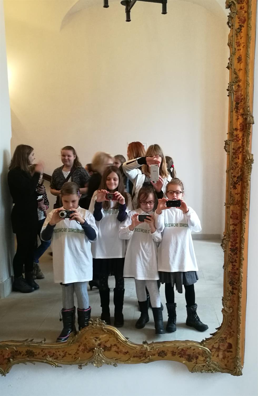 Ugoszczono nas różnymi przysmakami, między innymi ciastkami, drożdżówkami, napojami. Następnie mieliśmy godzinne warsztaty z panem fotografem, Dariuszem Gorajskim, fotoreporterem „Kuriera…”. Dowiedzieliśmy się, że telefonem najlepiej robi się zdjęcia poziomo, bo wtedy możemy wykorzystać cały kadr.