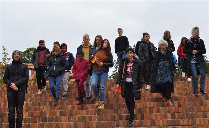 Uczniowie Liceum Ogólnokształcącego nr 9 w Szczecinie i Marianne-Cohn-Sonderschule w Berlinie z Ewą Marią Slaską oraz nauczycielami: Susanne Franke, Urszulą Tyborską i Romualdem Kuźmitowiczem na schodach berlińskiego modernistycznego osiedla Podkowa (Hufeisensiedlung). Tam zaczęła się ich podróż w historię i współczesność, o której piszą w dzisiejszym wydaniu „Szkolnego Pulitzera”. W pobliżu osiedla mieszkał Stanisław Kubicki, polski i niemiecki artysta, żołnierz polskiego podziemia, zamordowany w 1942 r. przez gestapo. Przypomnijmy, że szczecińska „dziewiątka” nosi imię Bohaterów Monte Cassino, a szkoła berlińska – Marianne Cohn. Patronka szkoły pochodziła z rodziny niemieckich Żydów zamieszkałych w Berlinie. W 1934 r. wyemigrowali do Francji. Gdy hitlerowskie Niemcy Francję zajęły, żyli pod fałszywym nazwiskiem. Marianne pracowała i utrzymywała rodzinę. W 1943 r. była opiekunką żydowskich dzieci, należała do żydowskiej tajnej organizacji i harcerstwa, które przerzucało żydowskie dzieci do Szwajcarii. 30 maja 1944 r. gestapo aresztowało ją razem z dziećmi. Organizacja miała plan jej uwolnienia, lecz ona nie chciała dzieci opuścić. 8 lipca 1944 r. została rozstrzelana i pochowana w pobliżu miasteczka Annemasse blisko granicy ze Szwajcarią. Miała 22 lata. Francja uhonorowała ją Krzyżem Zasługi ze Srebrną Gwiazdą. Szkoła w Annemasse nosi jej imię.