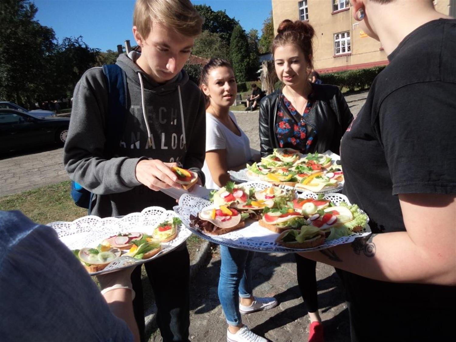 W połowie września w pracowni gastronomicznej uczniowie przygotowali zdrowe i wyjątkowo smaczne kanapki. Chcieli w ten sposób zwrócić wszystkim uwagę na odżywianie oraz wpływ posiłków, pierwszego i drugiego śniadania, na prawidłowe funkcjonowanie naszych organizmów i samopoczucie. Ciekawa była również propozycja uczennic 4 klasy technikum turystyki wiejskiej, które zaprosiły na degustację napojów mleczno-owocowych i pankejksów. Popularnością cieszyły się placuszki, podawane w różnych odsłonach, oraz orzeźwiające koktajle.