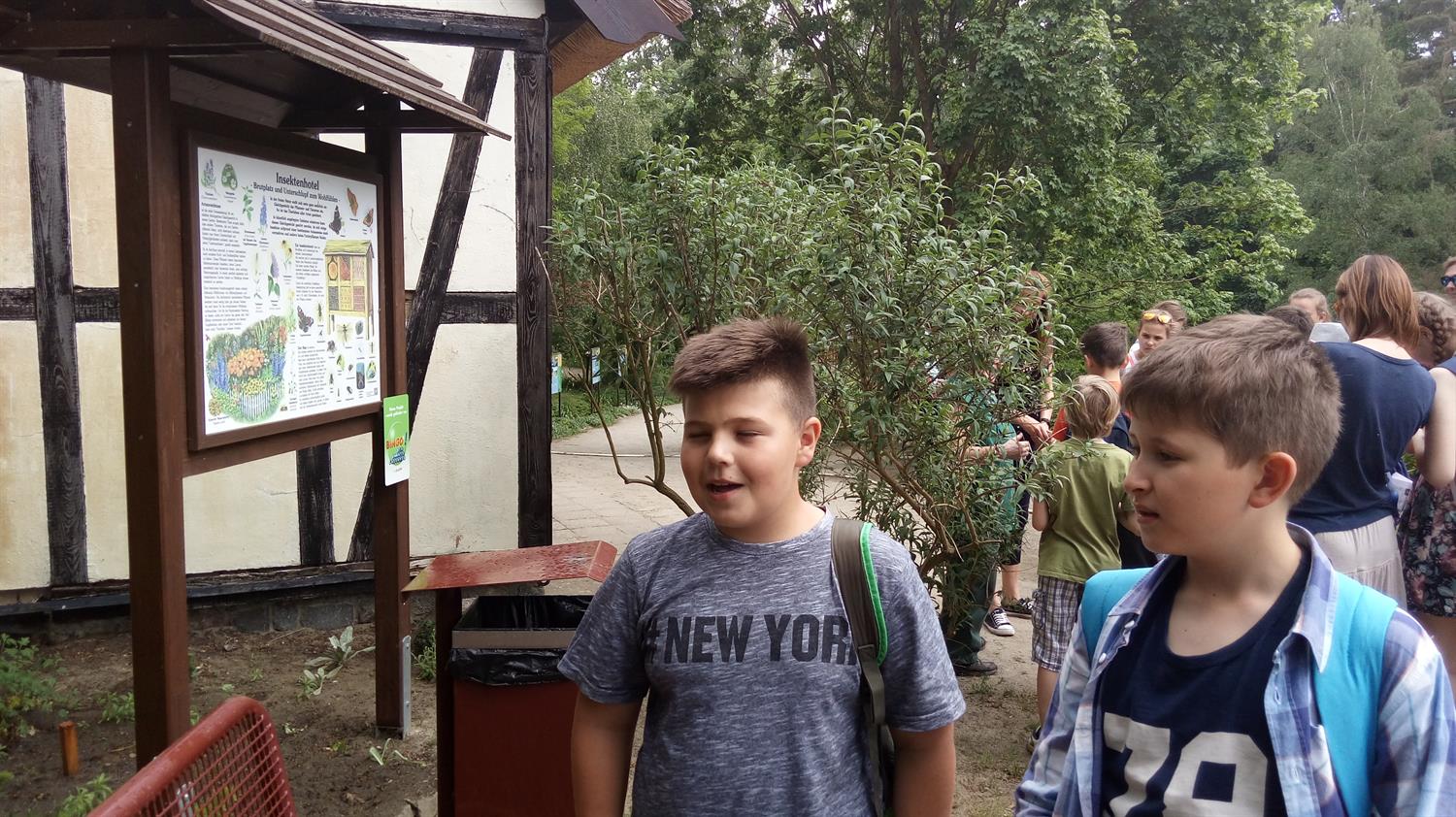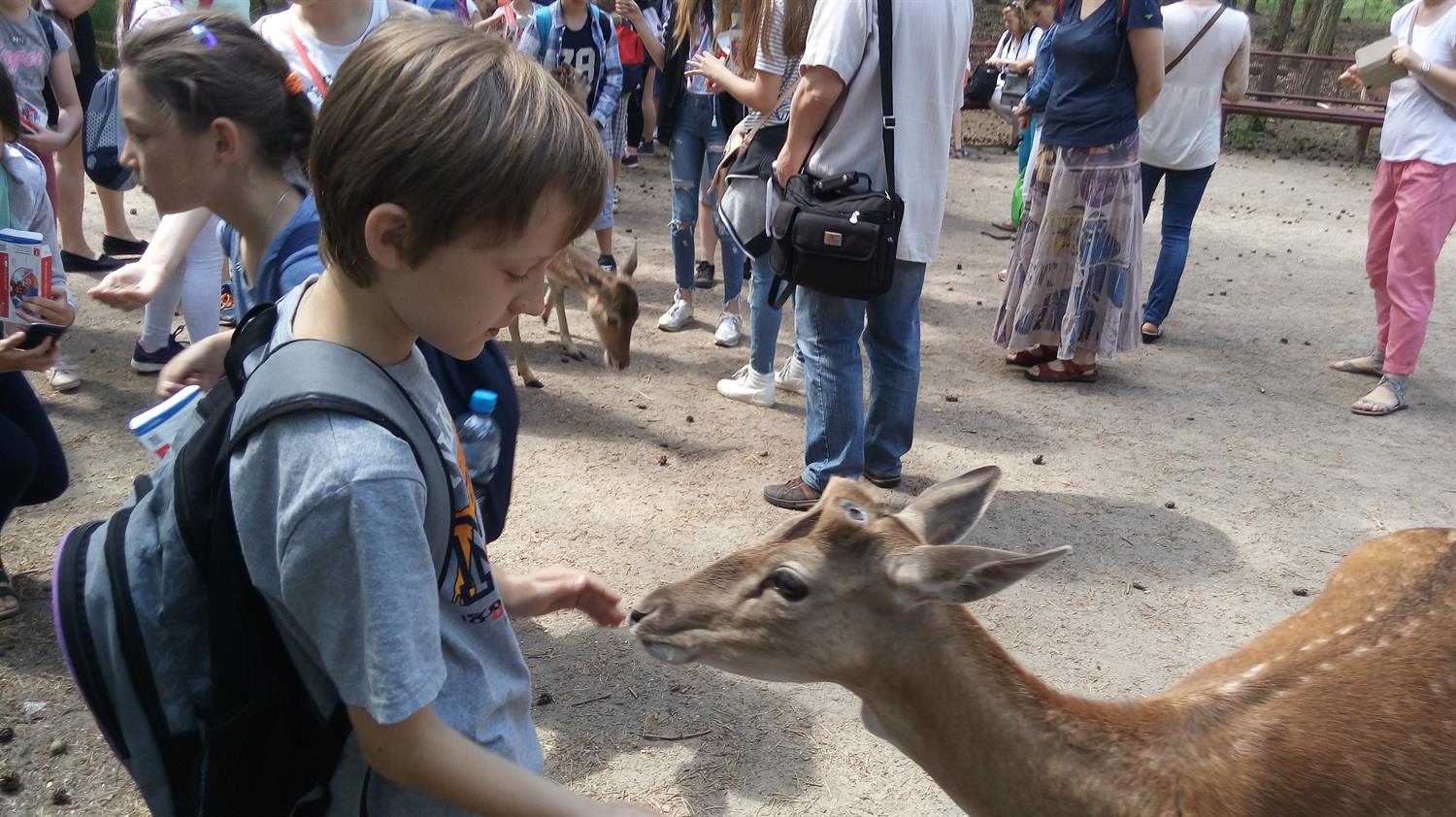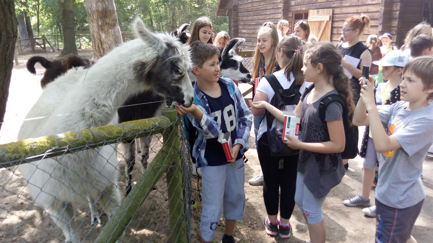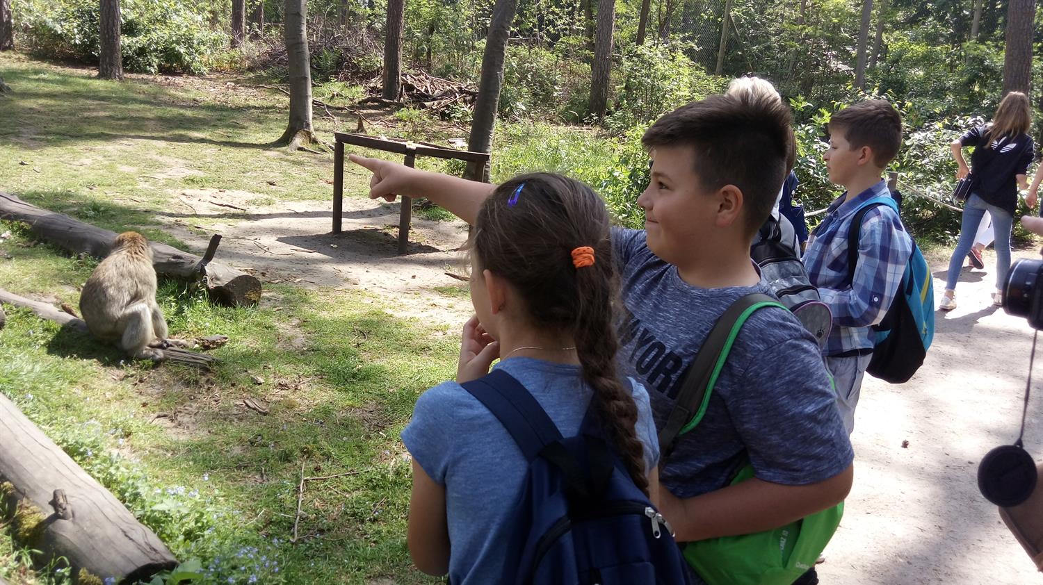 Największe wrażenie zrobiły na mnie przyjazne i figlarne małpy. Zaskoczeniem było to, że mogliśmy wejść do ich klatki. Małpy widząc nas były trochę zaskoczone, jednak po chwili oswoiły się i zaczęły bacznie się nam przyglądać oraz rozpoczęły swoje zabawy. Było ich około siedem, koloru brązowo-szarego, nie miały ogona, były kudłate. Przyjemnie było obserwować ich wybryki.