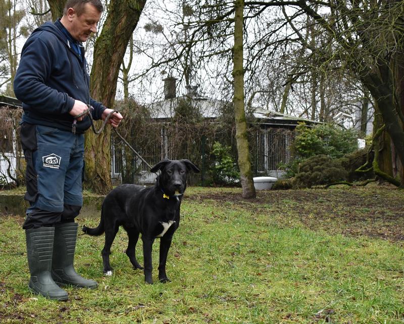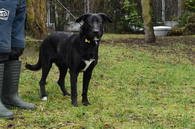 Trafił do schroniska pod koniec stycznia br. Dowieziony przez pogotowie interwencyjne z ul. Potulickiej. Adi - młody czarny pies z charakterystycznymi białymi łatami.