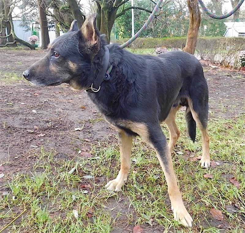 Przez trzy lata żył uwiązany na półtorametrowym łańcuchu. Gdy do schroniska został dowieziony przez pogotowie interwencyjne, bał się wszystkiego, nawet odgłosów ulicy. Nie znał spacerów, nie potrafił się bawić, nie umiał chodzić na smyczy.