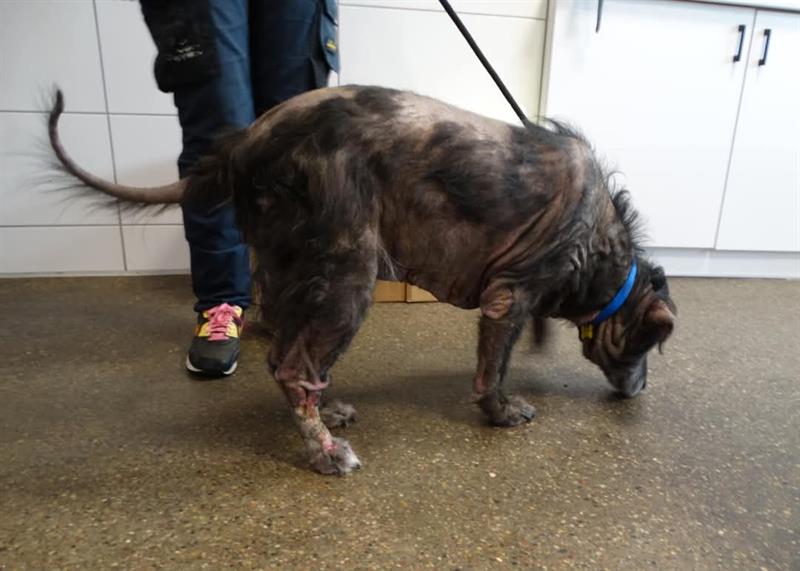 Sunia została przekazana do Schroniska dla Bezdomnych Zwierząt w Szczecinie w czerwcu br. Z podejrzeniem nużycy, świerzbowca, z ropnym zapaleniem skóry, powikłaniami grzybicy.