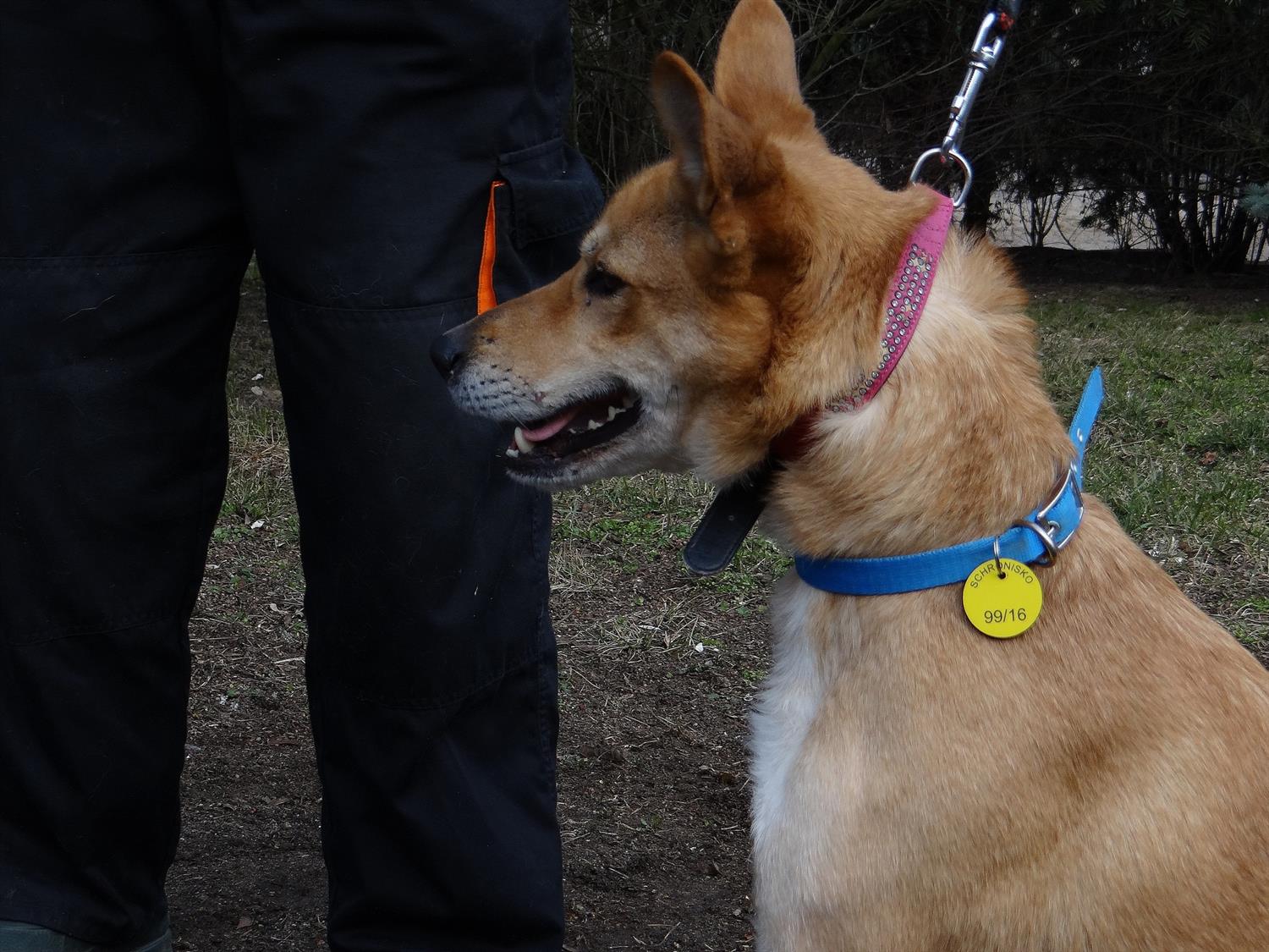 Długie nogi, sprężysty krok, kondycja jak u biegacza długodystansowego. Rudy pysk w uśmiechu. Na szyi różowa obroża z błyszczącymi cyrkoniami. Gdyby nie przywieszony do niej numer, nie sposób byłoby poznać, że to psina ze szczecińskiego bidula.