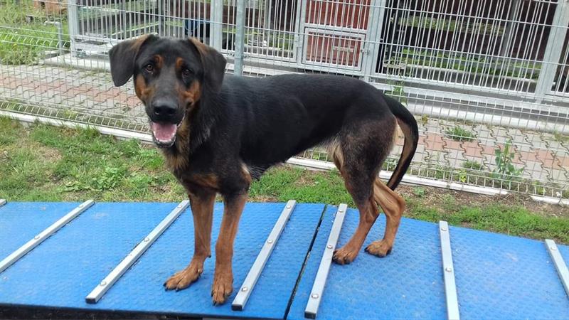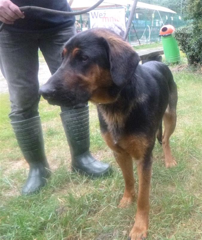 W połowie wakacji ktoś ją zostawił przy lesie i niemal na granicy miasta: w Zdunowie. Nie wiadomo, jak długo błąkała się w tym rejonie. Gdy jednak trafiła do schroniska, była wygłodzona i bardzo przestraszona. Dlatego przez kilka pierwszych dni chowała się przed światem w najdalszym kącie boksu.