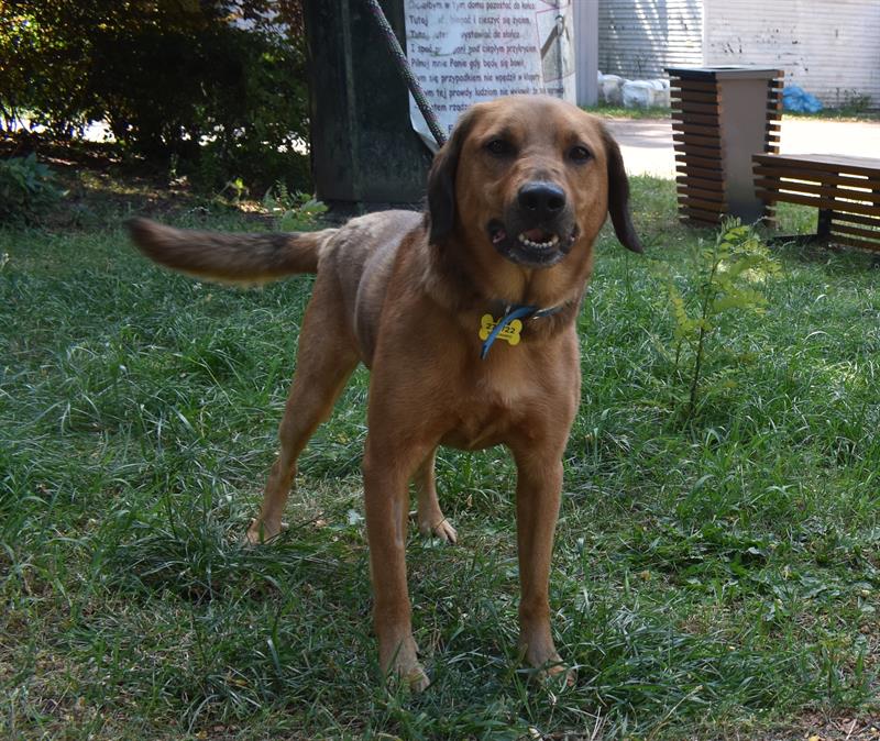 Na powitanie zabawnie marszczy nos i przyjaźnie macha ogonem z takim rozmachem, że dosłownie robi wiatr. Rudawy psiak z klapniętymi uszami, który lgnie do ludzi. Nie sposób po nim poznać, że mu właśnie zawalił się świat: stracił dom i rodzinę.