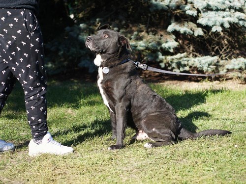 Nie jest ani młody, ani mały. Do tego postury, która wzbudza respekt. Ale w oczach ma to coś, co serce porusza niczym spojrzenie kota w Shreku. Mondi, czyli 8-letni mieszaniec amstaffa z labradorem. Wielki łasuch o delikatnej naturze.