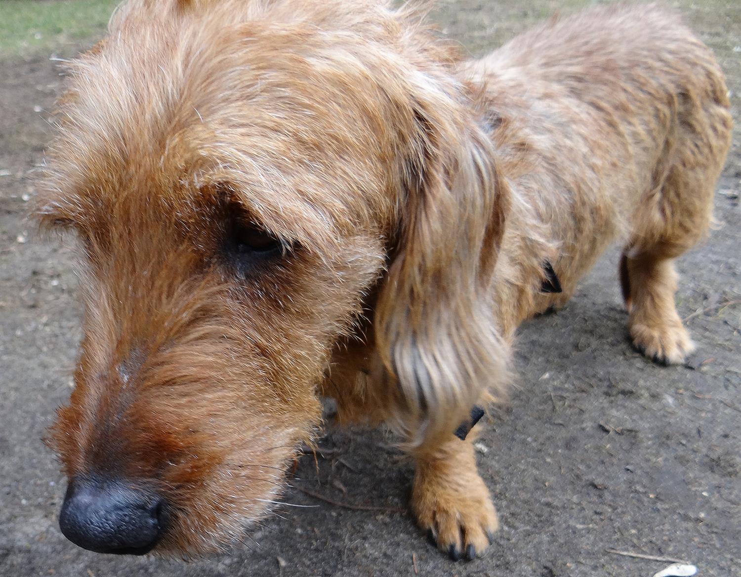 Do schroniska ów szorstkowłosy jamnik (7/16) trafił w sylwestrową noc. Przerażony. I chory: z licznymi zmianami skórnymi, guzami. Ktoś tę psinę okrutnie zaniedbał. Latami omawiał pomocy weterynaryjnej, skazując na cierpienie. W końcu odepchnął, porzucił. Gdyby jamnik nie trafił do schroniska, już pewnie by nie żył.