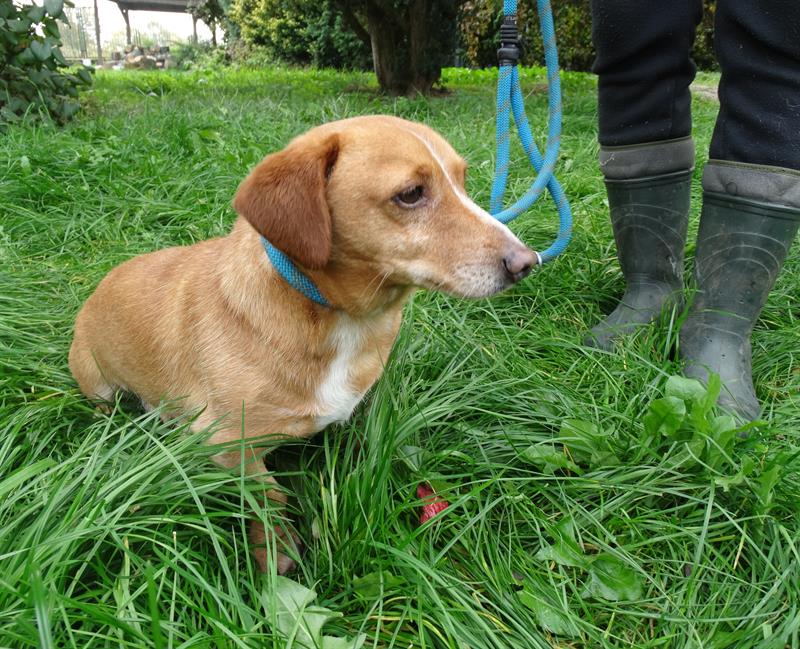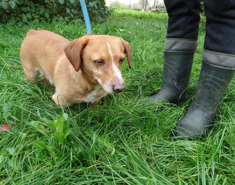 To kundelek w typie jamnika sięgający ledwie do połowy łydki. Uroczy, ale już niemłody. Zza schroniskowych krat nie sposób dostrzec, jak bardzo przyjazną ma naturę – jak wielkim jest pieszczochem, tęskniącym za ciepłymi kolanami opiekuna i miejscem u jego boku na wygodnej kanapie. Ale w schronisku do przytulanek, głasków, do wspólnych zabaw okazji ma dużo mniej niż tego potrzebuje. Dlatego nie odnajduje się w realiach placówki. Na krótkich nóżkach coraz ciężej mu dźwigać brzemię krzywdy i odrzucenia. Widać, że bardzo cierpi. Tęskni. Z każdym dniem smutnieje. Dla niego nowy dom i rodzina to… naprawdę jedyna szansa na przetrwanie.