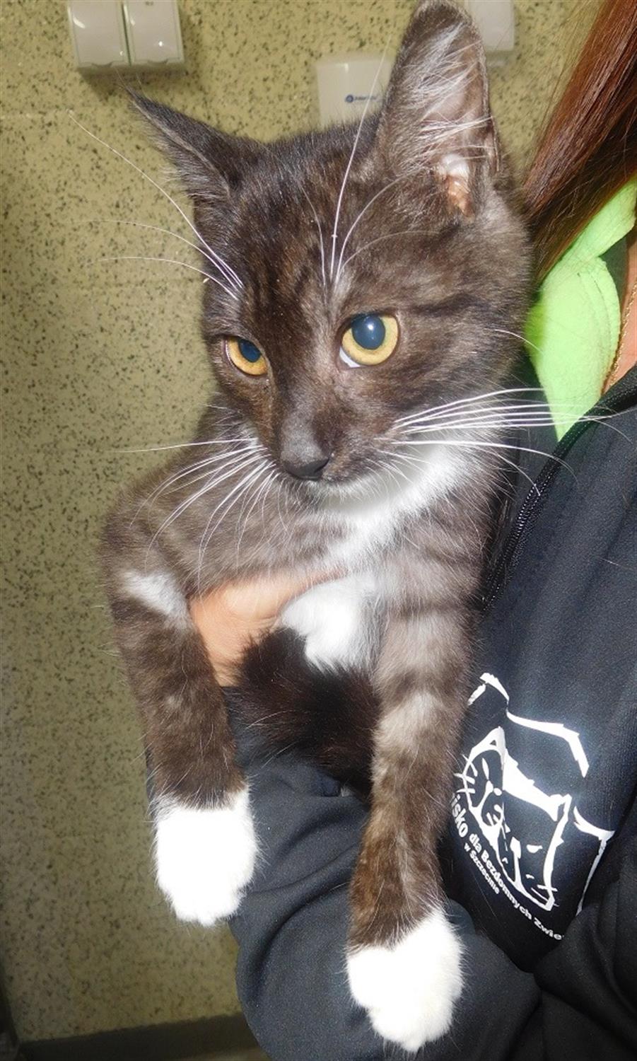 - Został znaleziony na jednej z ulic Stołczyna. W kiepskim stanie: w drobniutkim ciałku ledwie tliło się życie. Po wypadku drogowym lub upadku z dużej wysokości miał otwarte złamanie tylnej łapki w stawie skokowym. Nikt mu nie pomógł, więc… ranna była stara, zainfekowana, toczona przez larwy much. Dymka życie wisiało na włosku. Czekała go albo amputacja, albo wyprawa za„tęczowy mostek" - opowiadają Dymka schroniskowi opiekunowie.