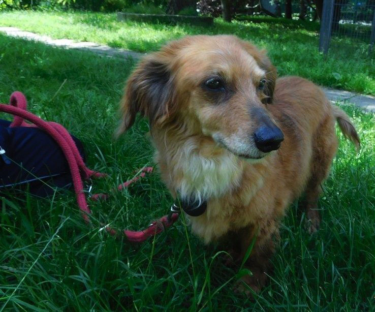 - Trafił do naszego schroniska w połowie maja. Dowieziony przez samochód pogotowia interwencyjnego ze ścisłego centrum Szczecina: zbiegu ulic Królowej Jadwigi i Władysława Łokietka. Piesek zaczipowany, zadbany, wykastrowany, więc… Wydawało się, że zaraz go odbierze właściciel. Jednak nie. Nic takiego nie nastąpiło. Dlatego Filuś pozostał z nami - opowiada obecna opiekunka tego rudego staruszka.