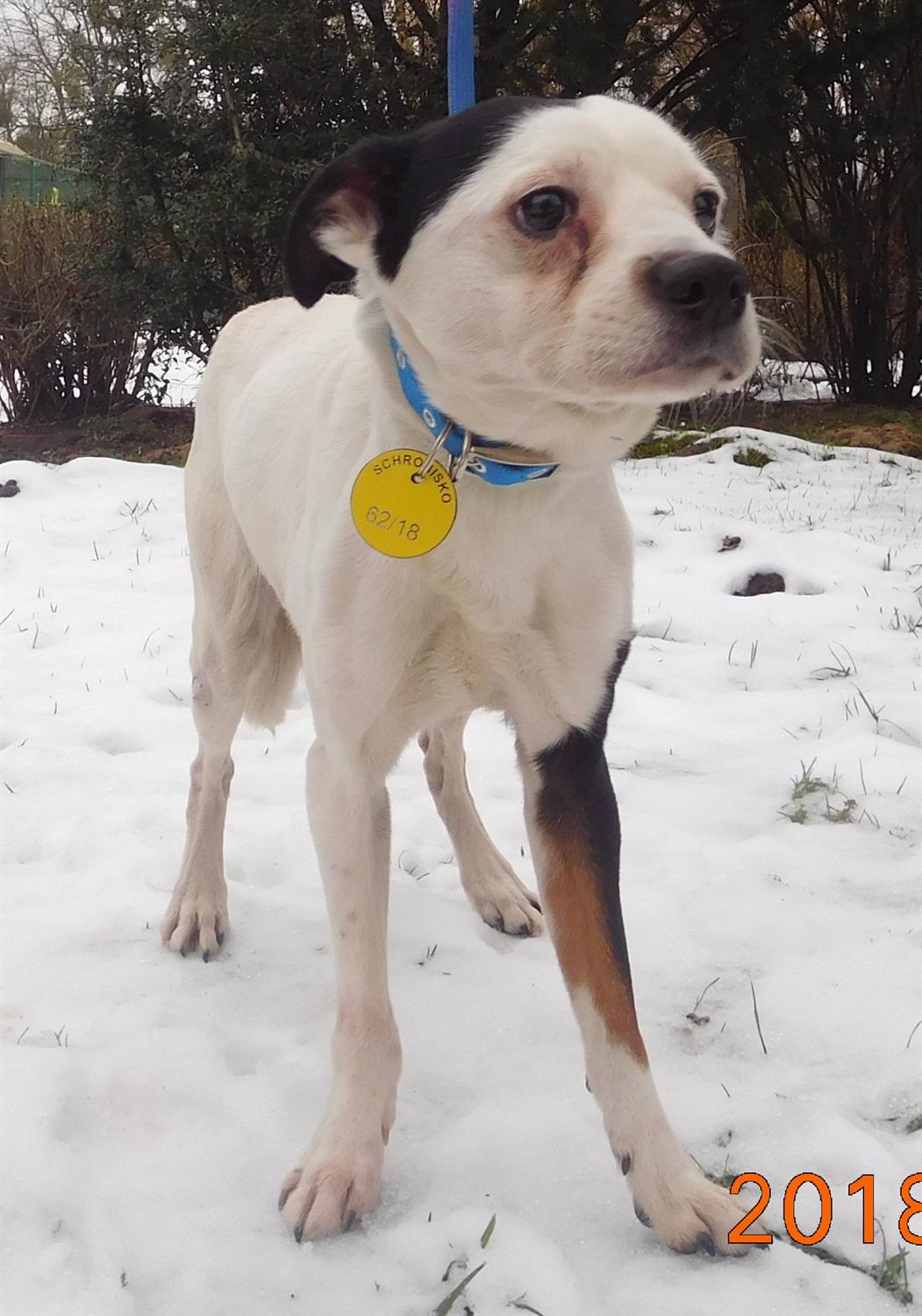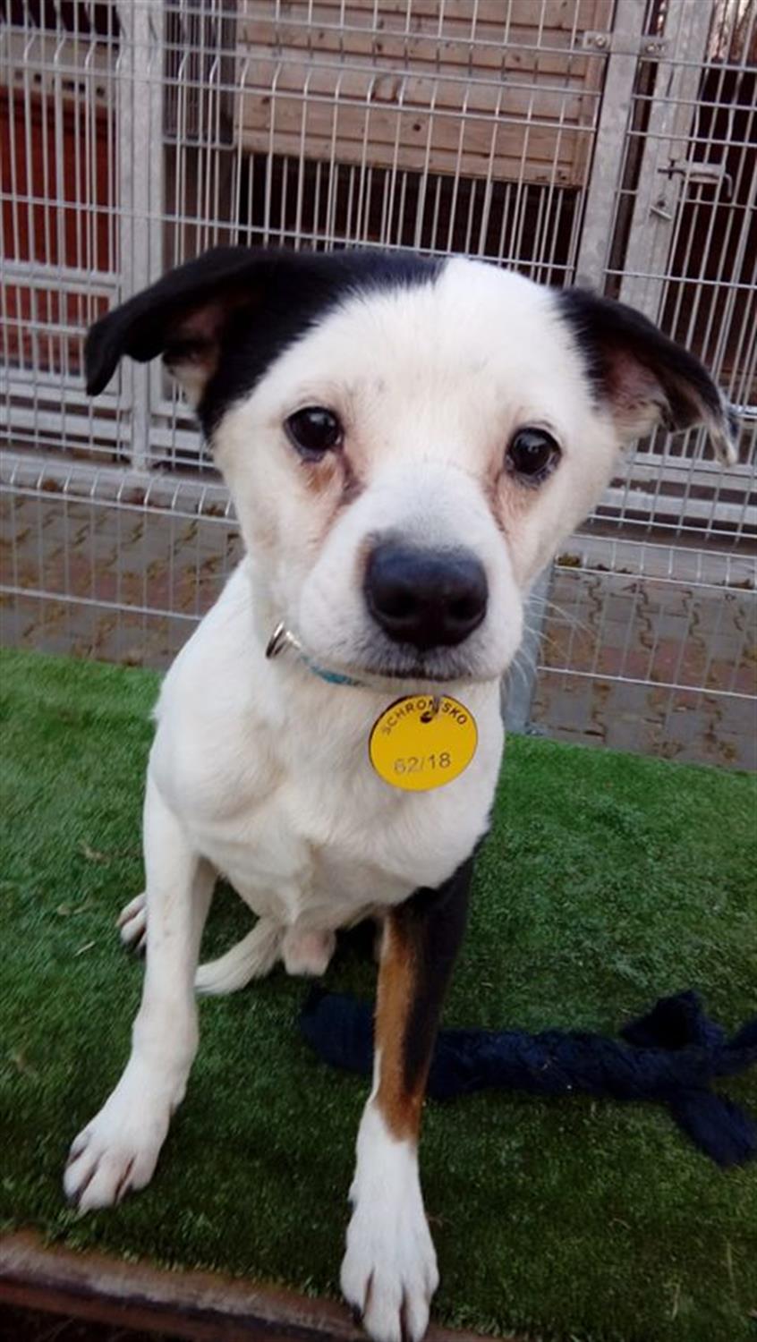 Ciapek trafił do schroniska z Załomia (ul. Produkcyjna). Przywieziony przez samochód pogotowia interwencyjnego: 20 stycznia. Wykastrowany, oznakowany przy pomocy mikroczipa, oryginalnie umaszczony, ale już nie pierwszej młodości, więc… jego domem jest teraz wybieg II, a imię zastąpił numer ewidencyjny: 62/18.
