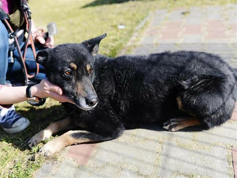 Gdy trafiła do schroniska, była wychudzona, odwodniona. Niewyobrażalnie brudna i cierpiąca. Jej ciało było pełne pcheł i kleszczy, usłane jątrzącymi się ranami. Na domiar złego miała wielołamowe złamanie prawej łapki: dało się słyszeć, jak przemieszczają się jej kosteczki.