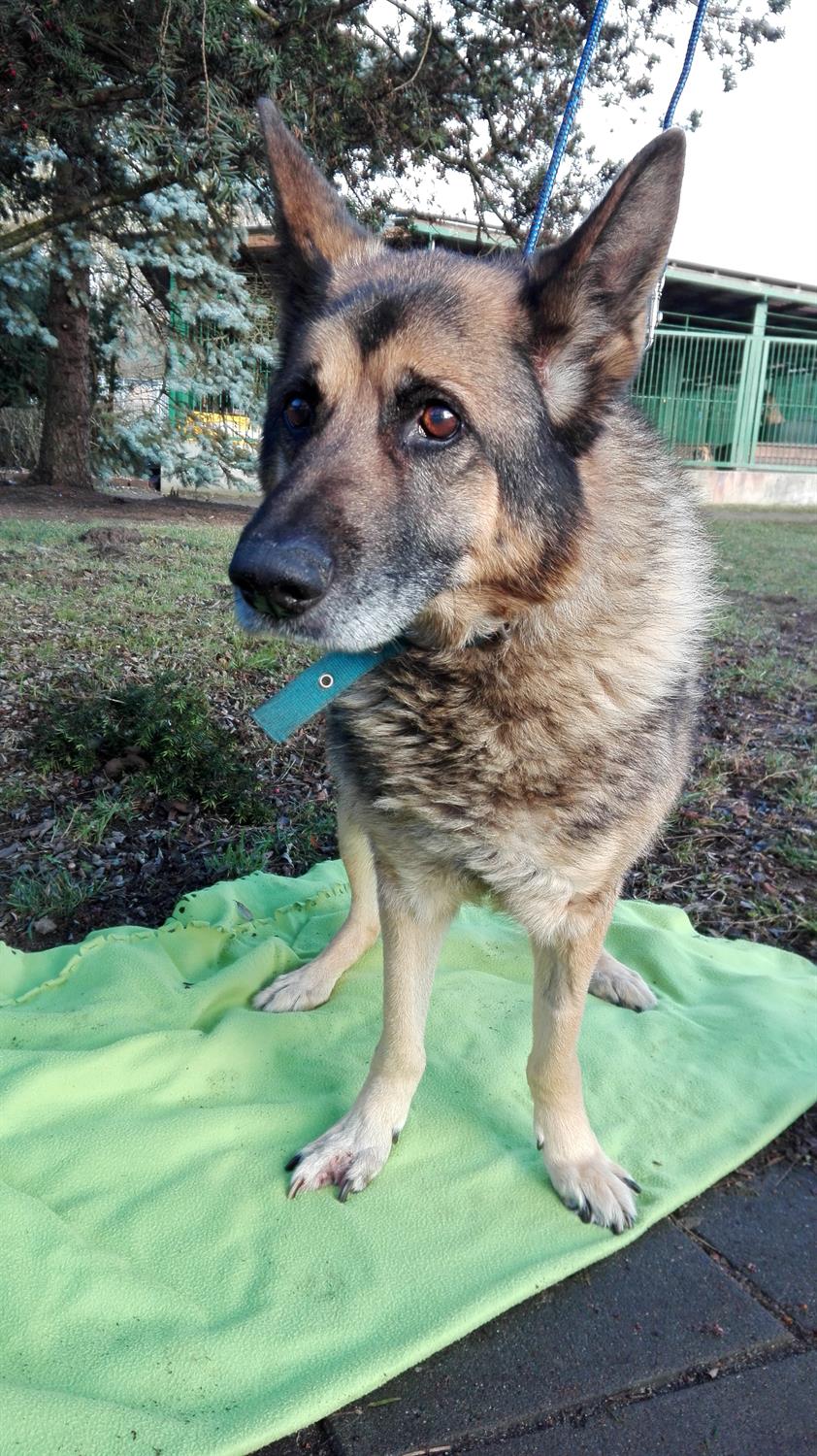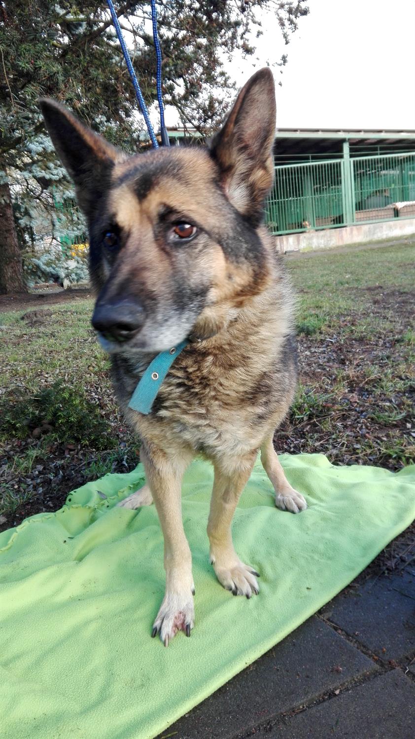 Jest mieszańcem owczarka niemieckiego, około 8-letnim, nieco wycofanym, nieufnym. Nie jest więc w tzw. adopcyjnym typie psów młodych, małych, o radosnej naturze, domagających się uwagi, łakoci i pieszczot. Skrzywdzony przez jednego człowieka, potrzebuje jednak drugiego - tym razem prawdziwego przyjaciela - który mu o złym losie pełnym bólu pozwoli zapomnieć.