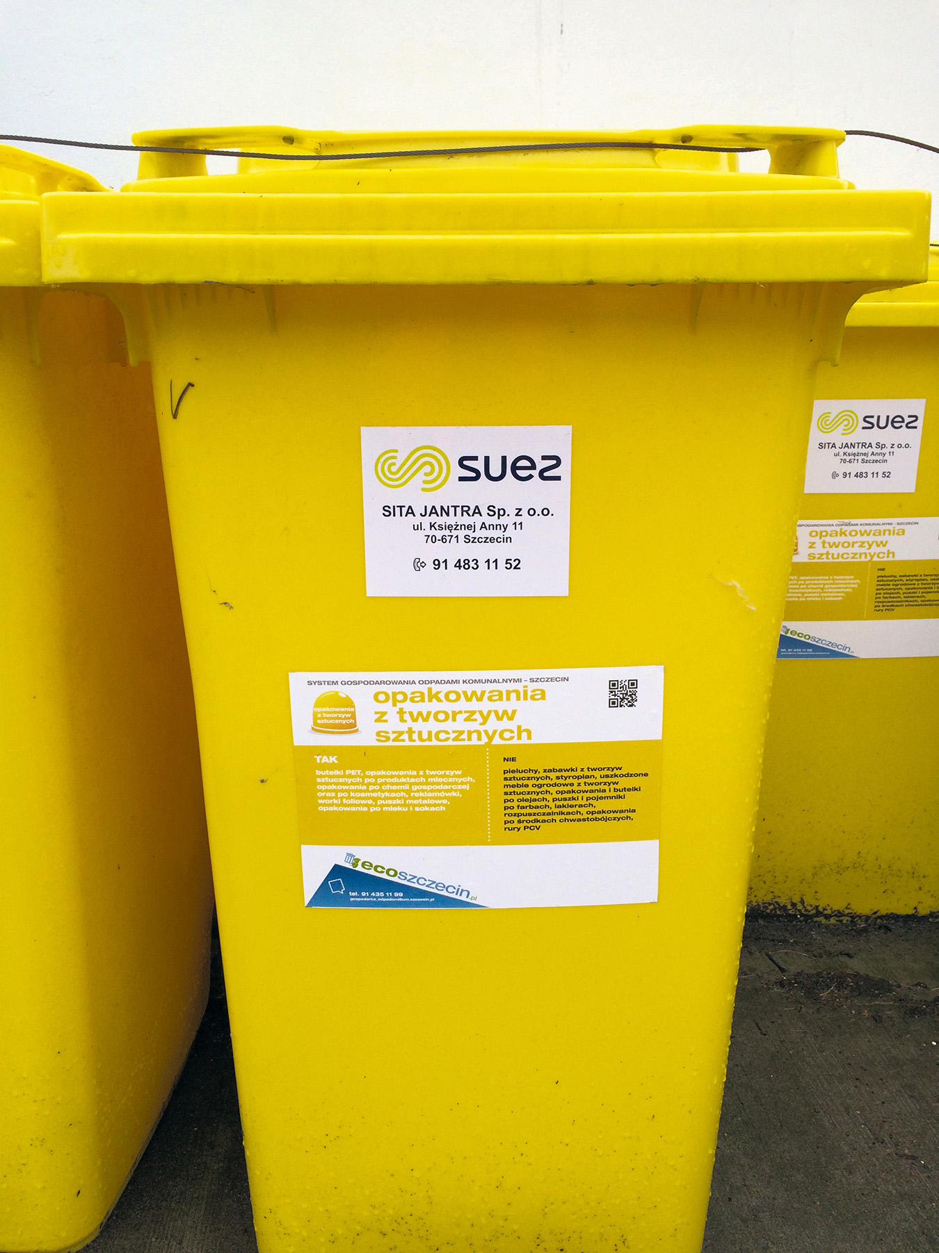 W przypadku zabudowy jednorodzinnej takie naklejki znajdują się wyłącznie na pojemnikach do odpadów zmieszanych, w wielorodzinnej – także segregowanych.