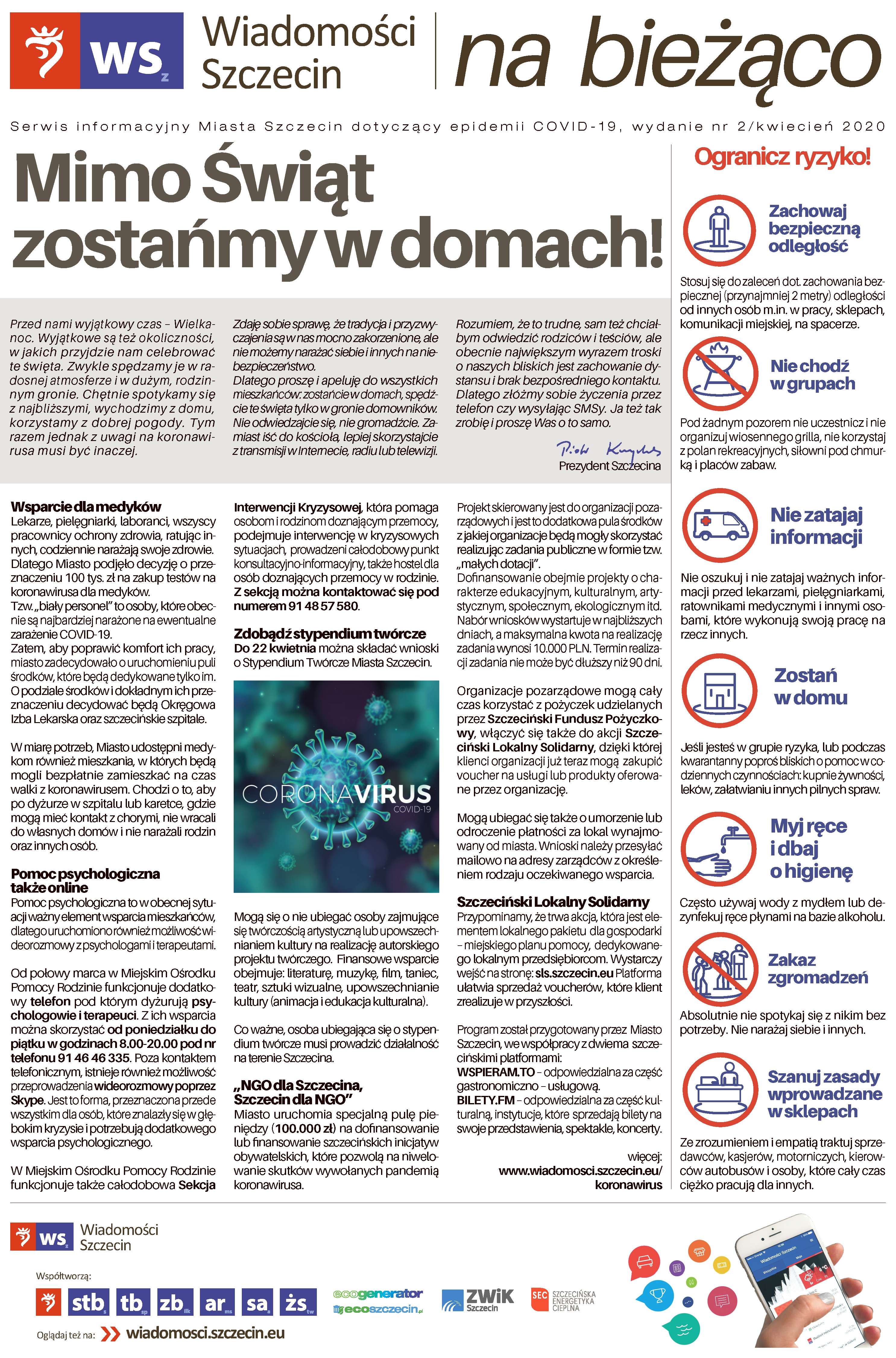 Serwis informacyjny Miasta Szczecin dotyczący epidemii COVID-19, wydanie nr 2/kwiecień 2020