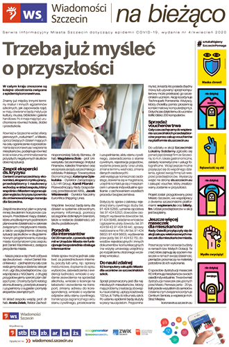 Serwis informacyjny Miasta Szczecin dotyczący epidemii COVID-19, wydanie nr 4/kwiecień 2020